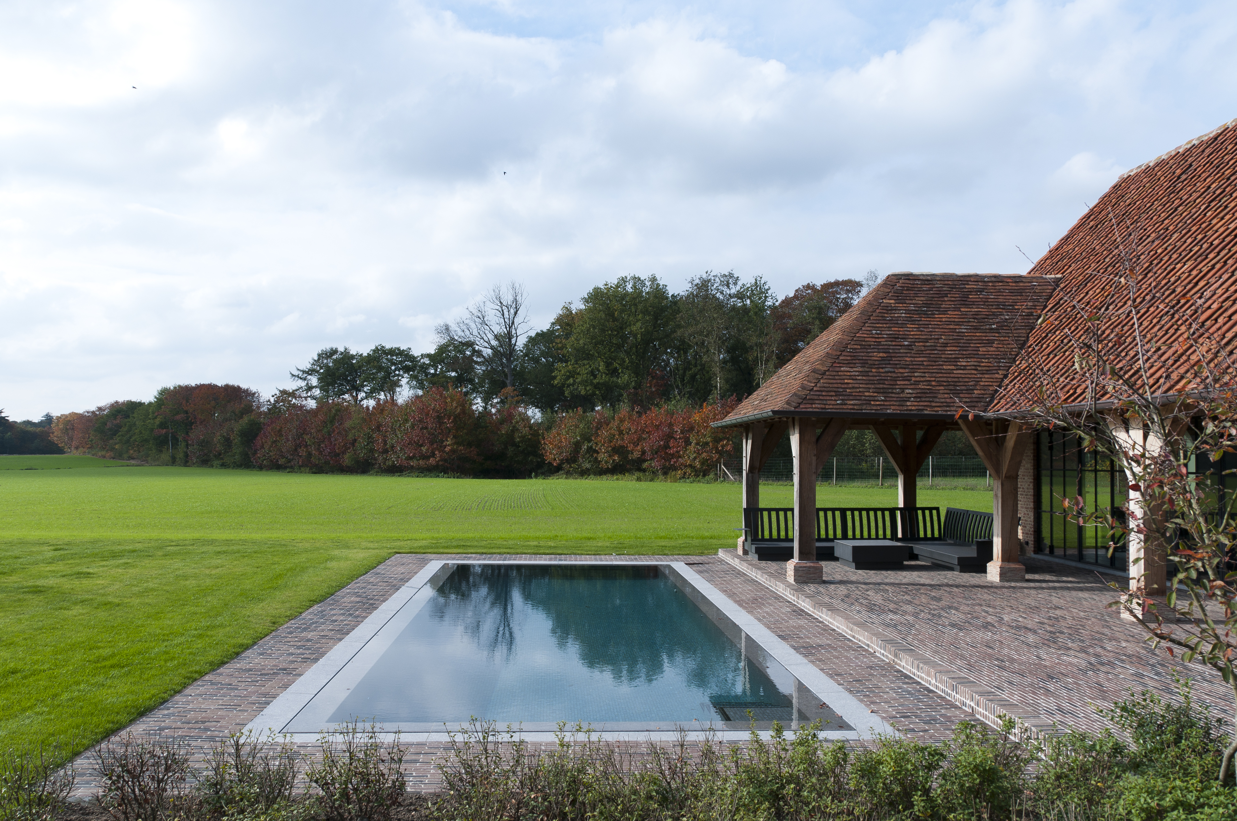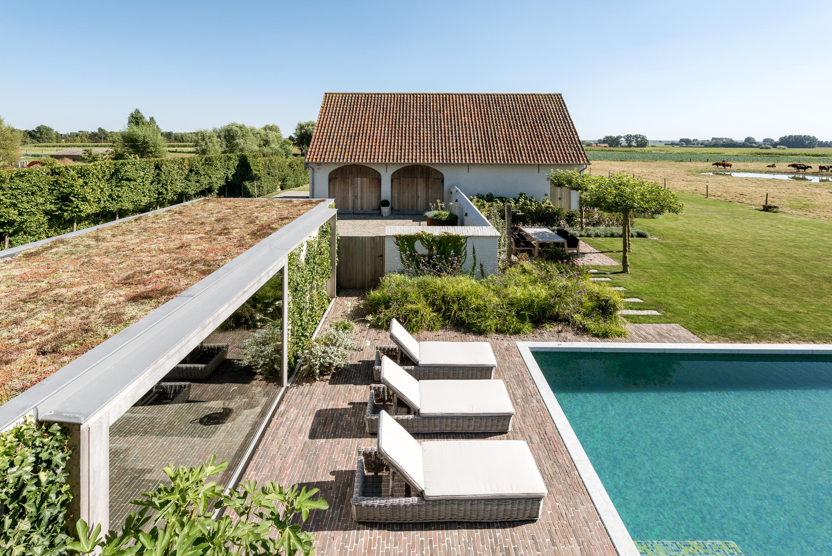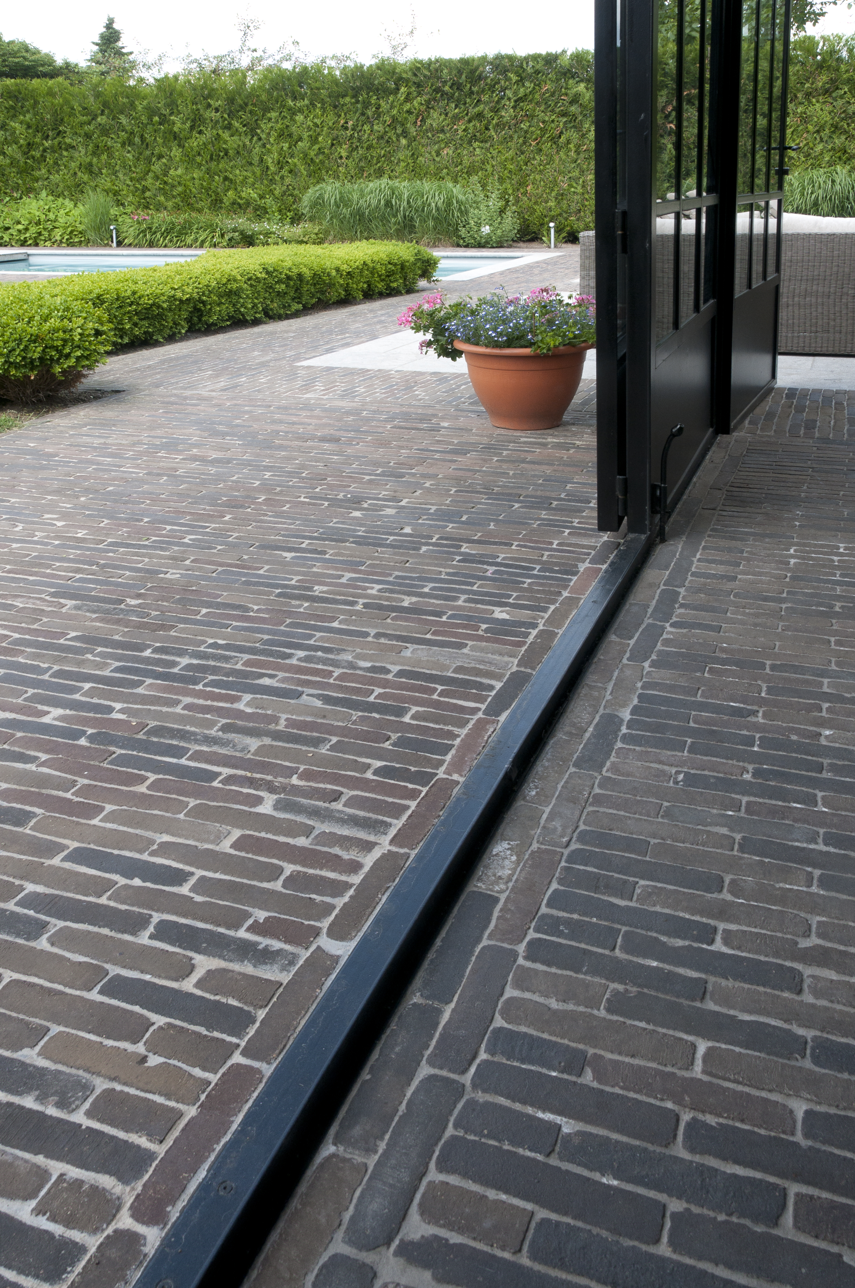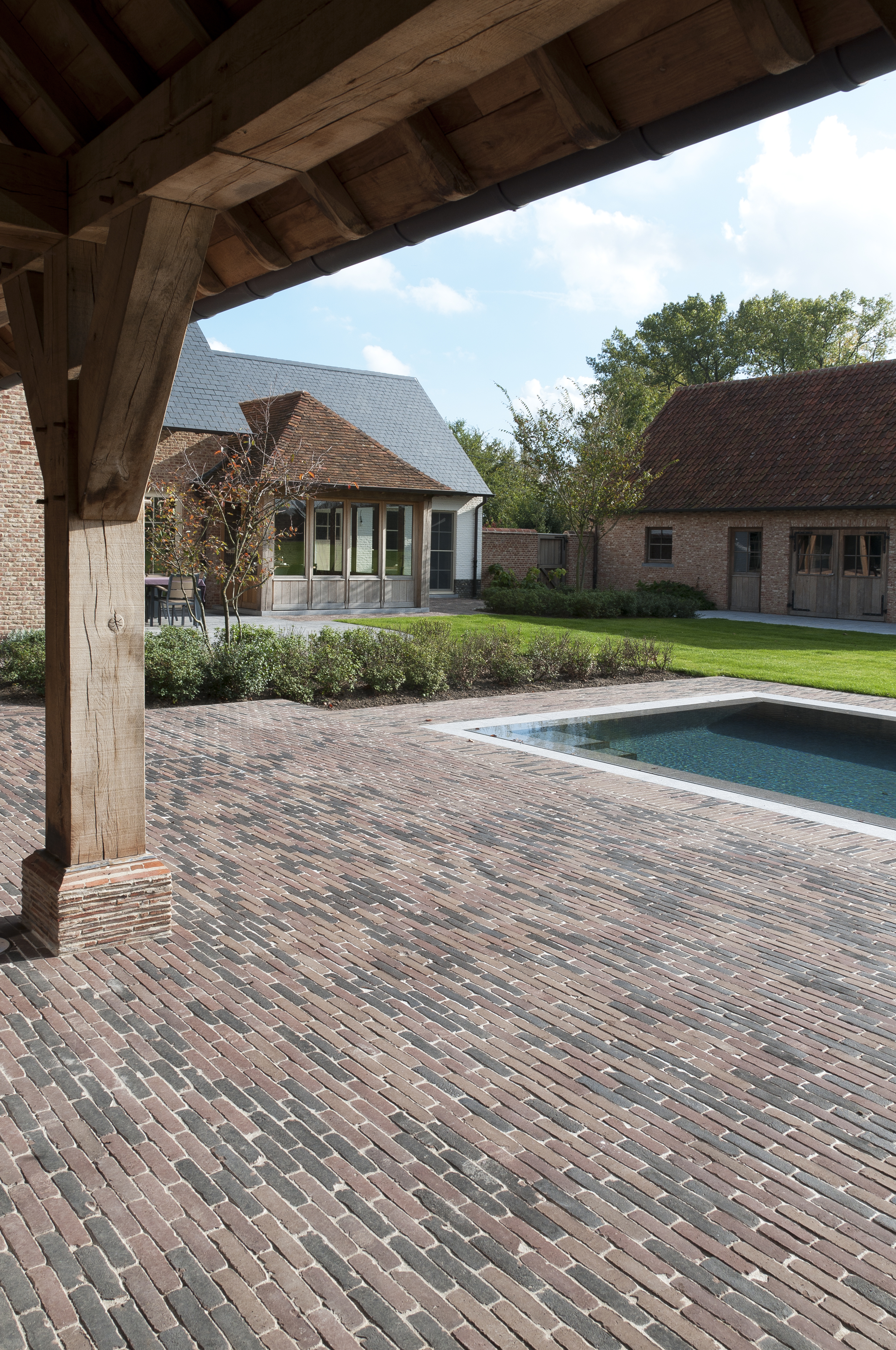 Gianni De Clercq von Green Concepts erhielt bei diesem Projekt den Auftrag, einen Garten mitzuentwerfen, in dem die Besitzer sich das ganze Jahr über aufhalten können. Mitten in einer betriebsamen Umgebung sollte ein funktionaler und unterhaltsarmer Ort geschaffen werden, der einen traditionellen Charakter mit einigen modernen Akzenten kombiniert.