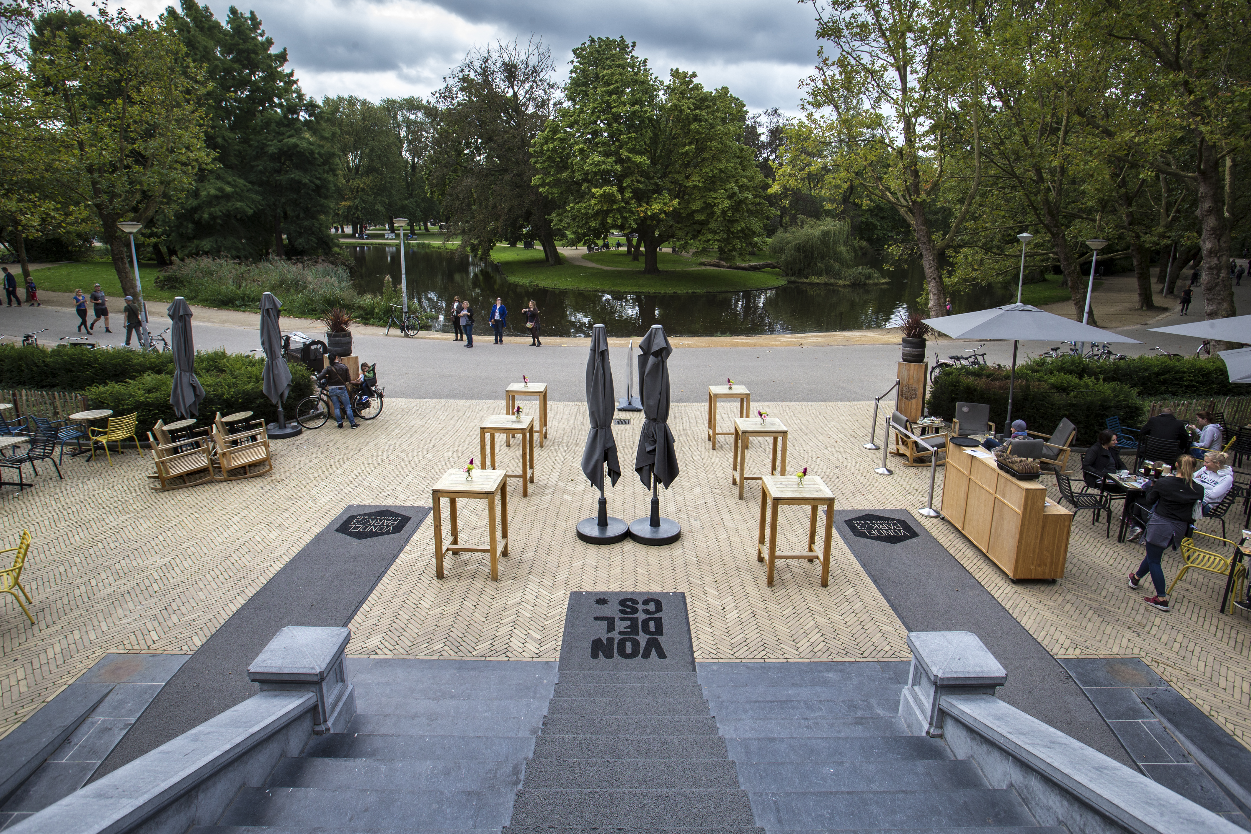 Der prachtvoll renovierte Pavillon, in dem der kulturelle Hotspot VondelCS untergebracht ist, erhielt 2014 nach der Restaurierung einen angepassten Außenbereich. Die unmittelbare Umgebung sollte sich an den Vondelpark-Entwurf von David Zocher aus dem Jahr 1865 angliedern und den Pavillon wieder in seiner ganzen Pracht erstrahlen lassen.
