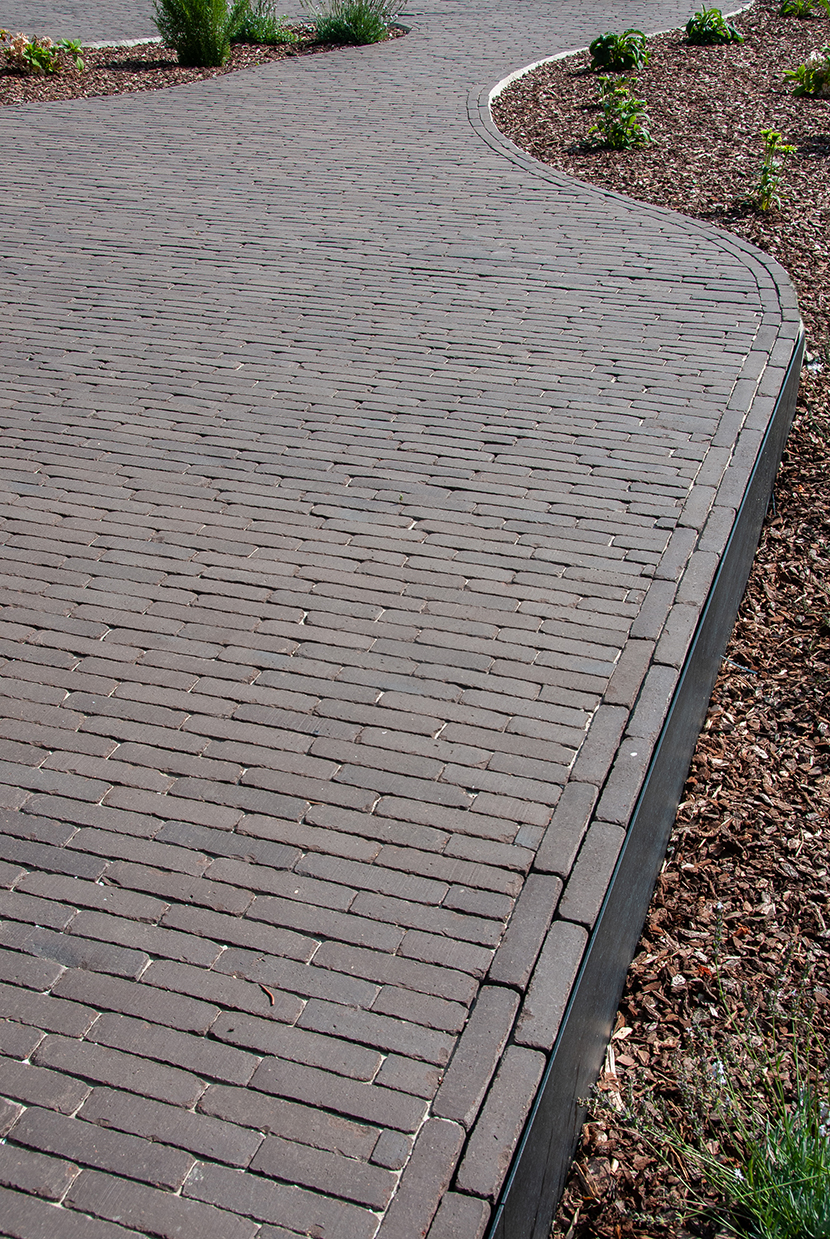 Der Belag muss mit einer seitlichen Einfassung der Klinker vor Verschiebung geschützt werden. Die Randeinfassung wird vor dem Aufbringen der Tragschicht verlegt.