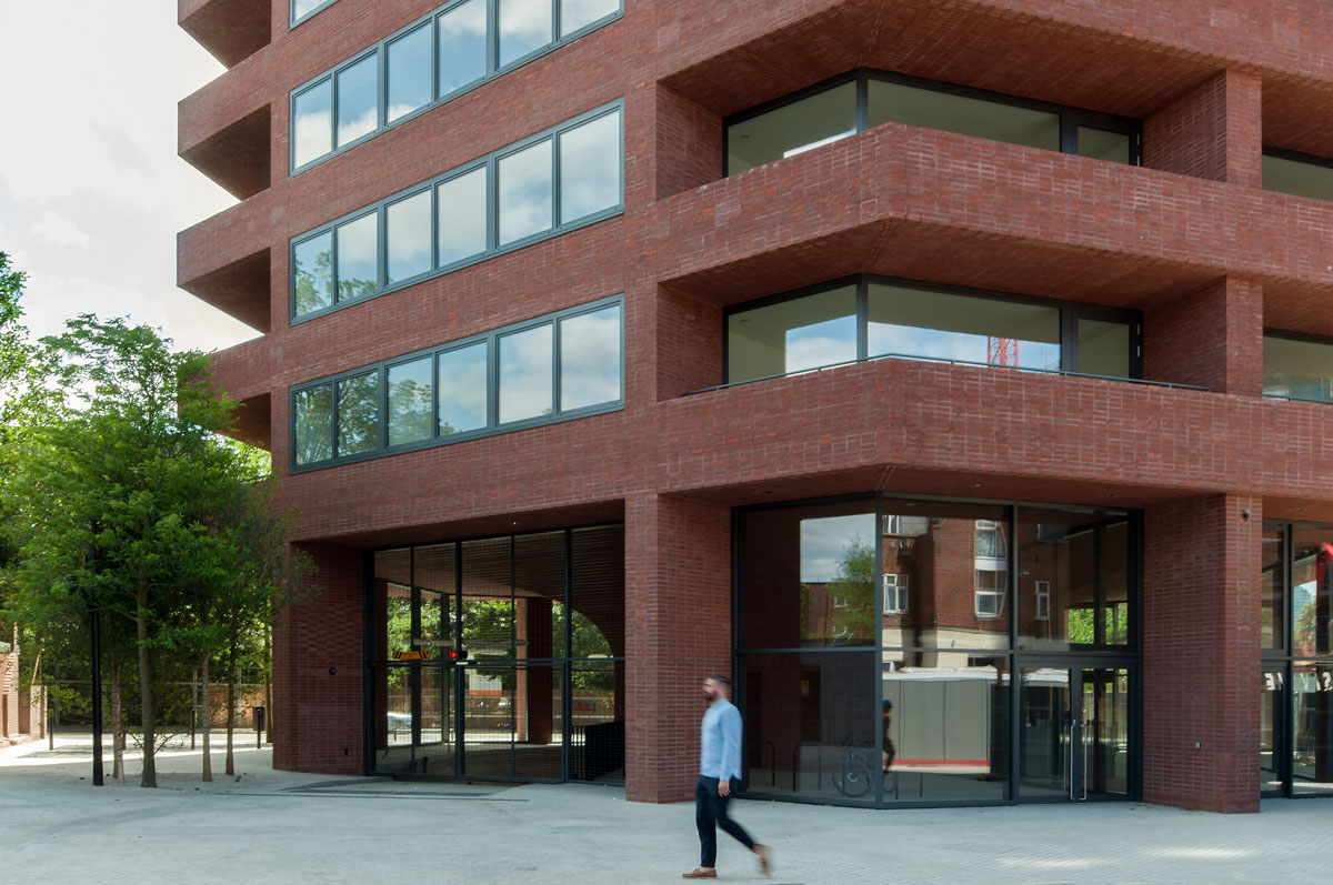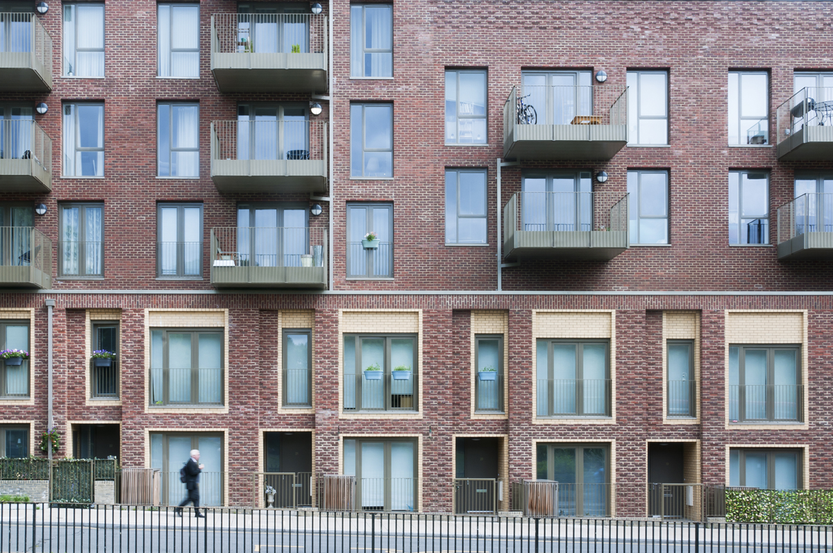 Hoxton Press auf der Colville-Wohnsiedlung, ein Wohnungsbauprojekt in Hackney, im Osten Londons wurde von den weltberühmten Architekten David Chipperfield Architects und Karakusevic Carson Architects entworfen.