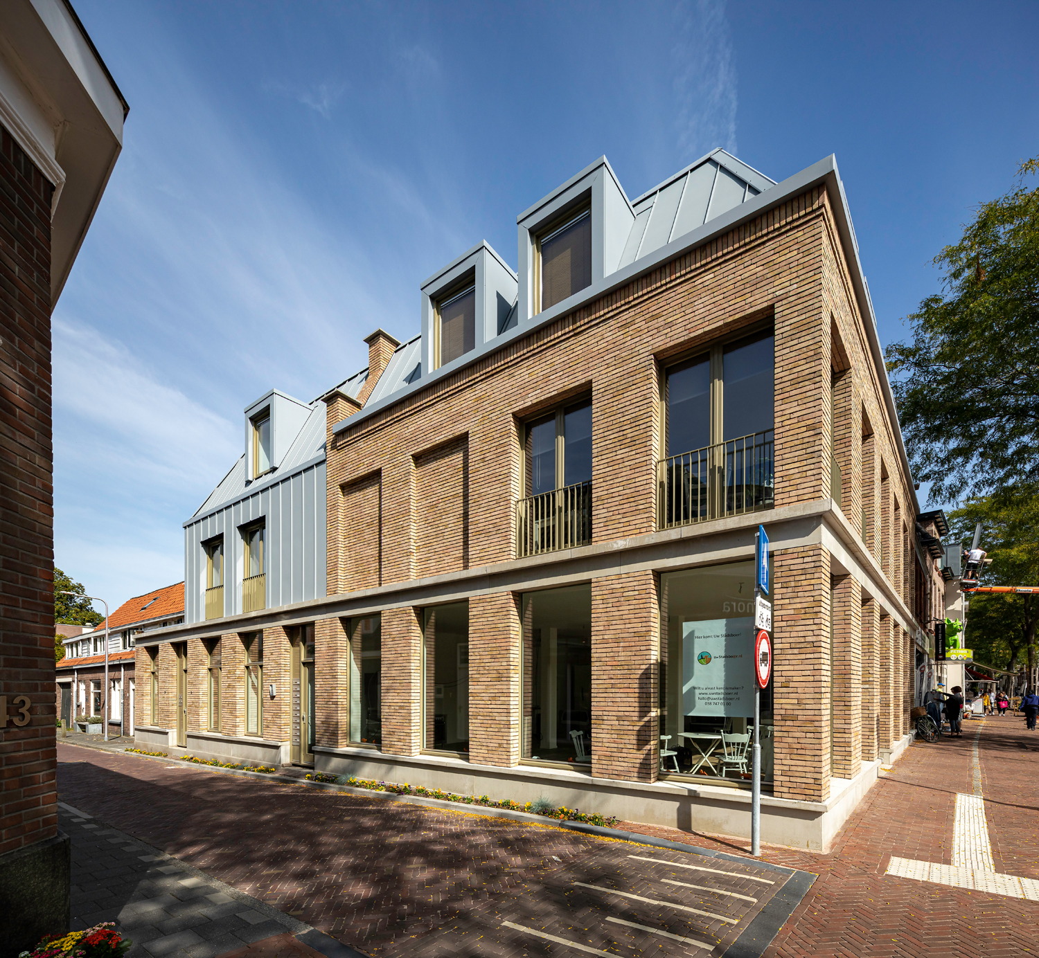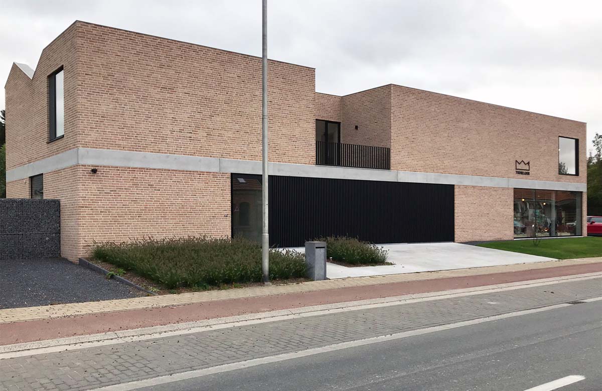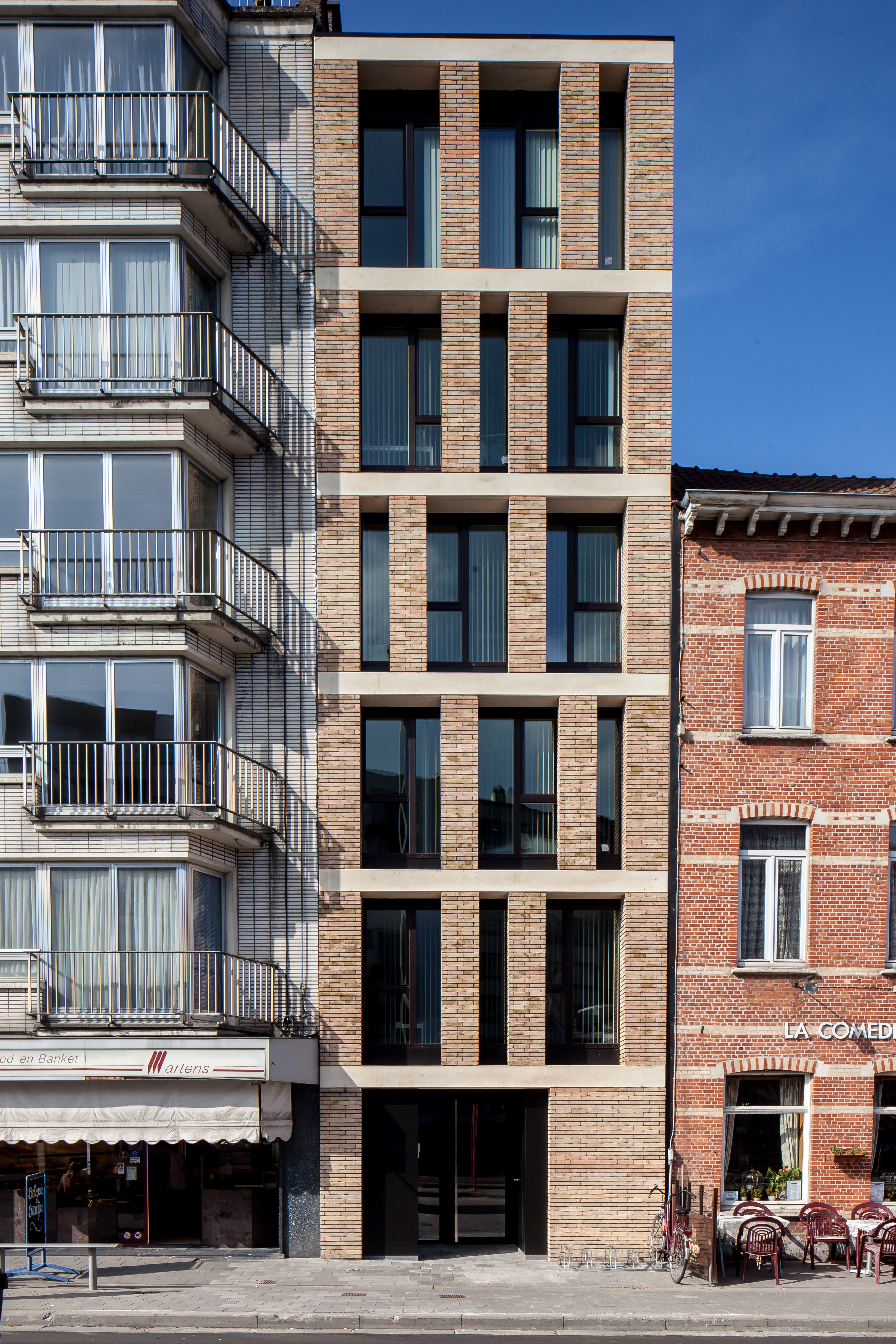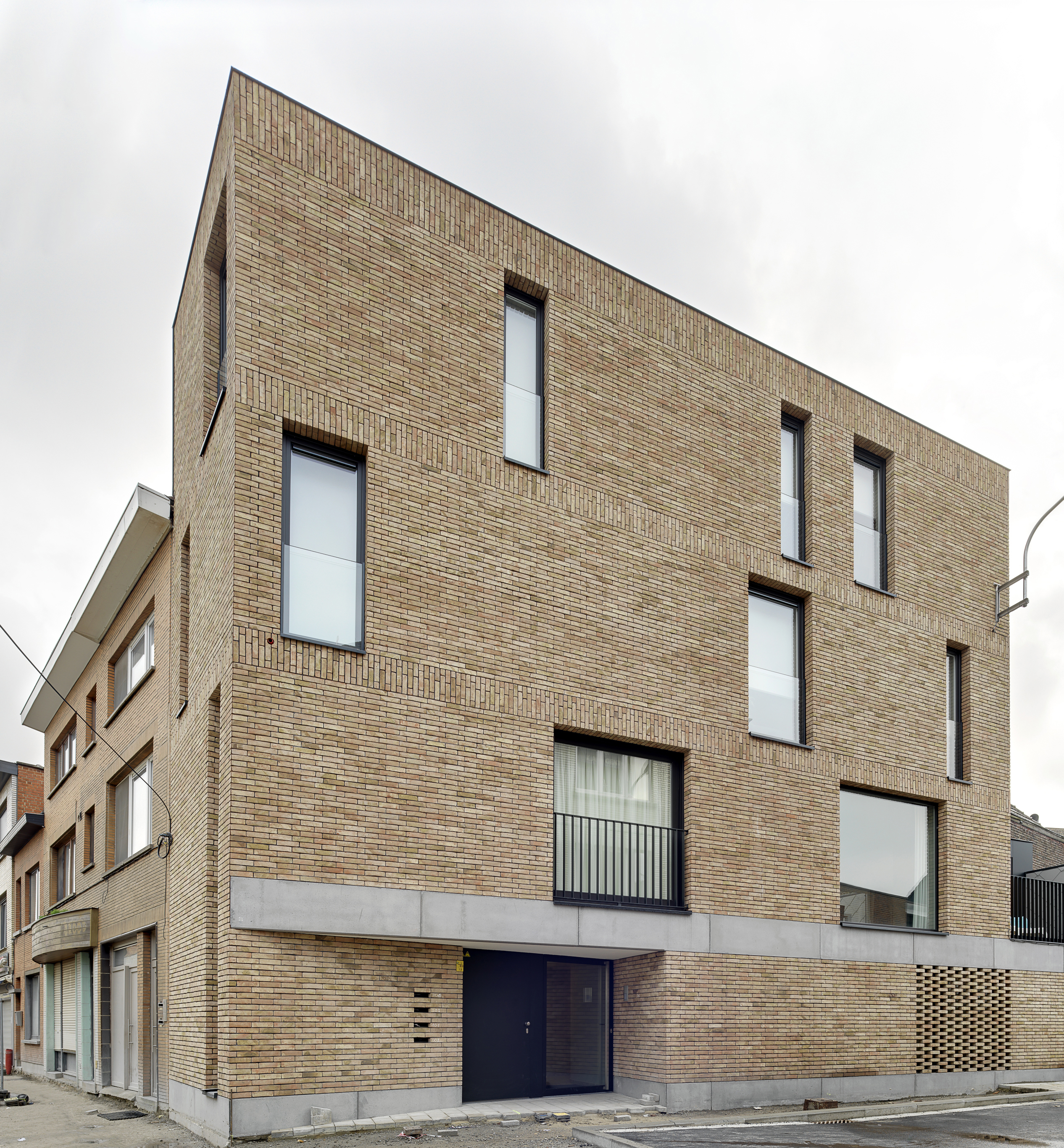 Das Wohngebäude wurde auf einem sehr schmalen Grundstück errichtet, das den Übergang zwischen einerseits einem sehr großen Gebäude aus den 1960er Jahren und einem typischen Eckhaus in einer authentischen Querstraße zum Stadtring hin bildet. Aus Gründen des Denkmalschutzes und der Kohärenz dieser Querstraße sollte das Eckhaus nicht abgerissen werden.