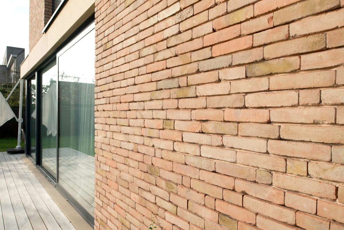 Der Brick V ist ein orangeroter (Orange red frozen) Formpressziegel, der nach dem Wasserstrichverfahren gefertigt wurde. Er trägt sowohl unser Hand-Made- als auch das ECO-7-size-Label. Unser Hand-Made-Label ist der Garant für eine kräftige, natürliche Nuance. Der unbesandete Brick V trägt auch das ECO-7-size-Label, da er im Vergleich zu einem klassischen Waalformat nicht 10 cm, sondern 7 cm tief ist. Durch die Zugabe von Mineralien während des Herstellungsprozesses erhält dieser Verblender eine einzigartige Oberflächentextur.