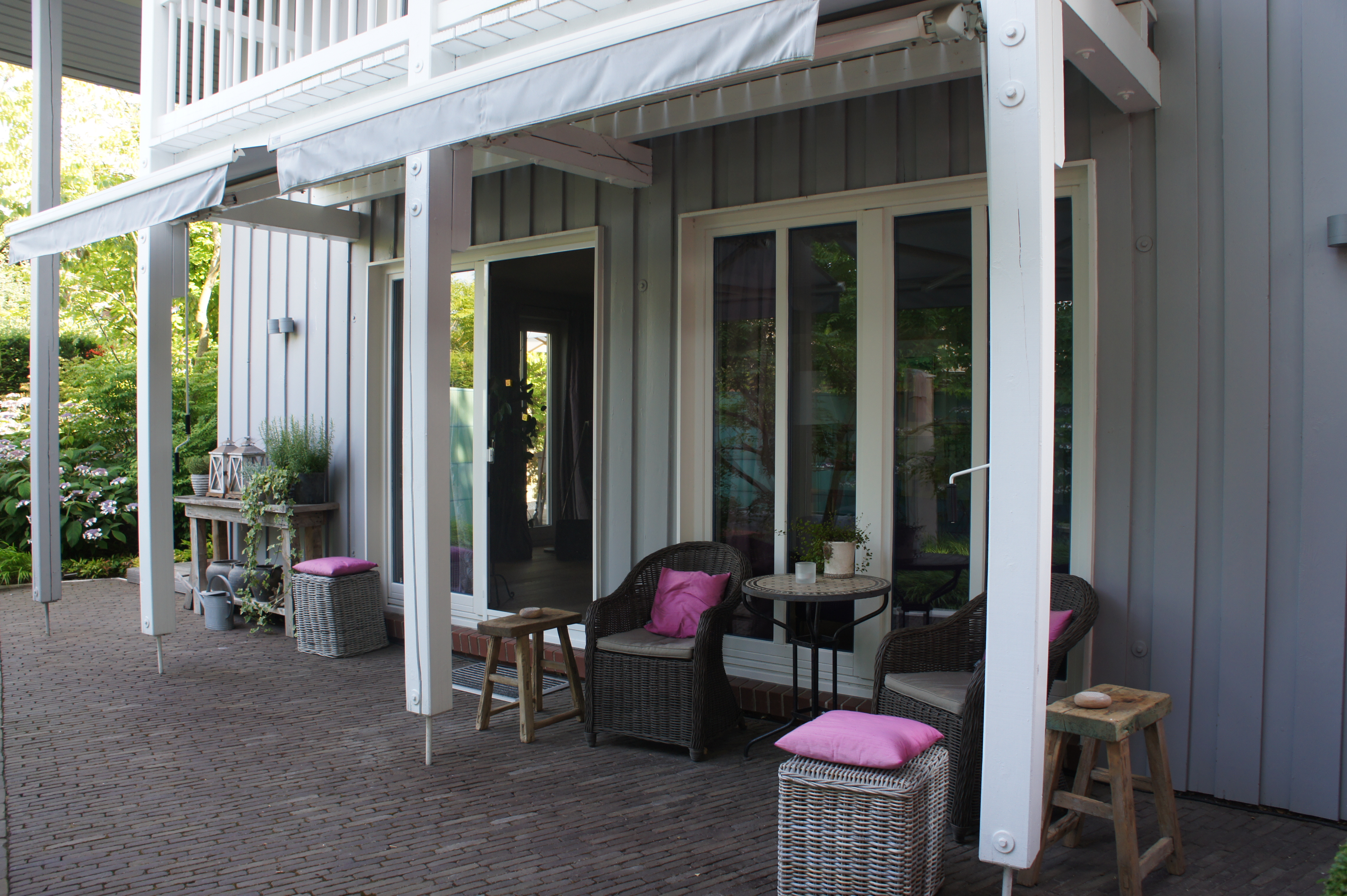 Die zur Hausarchitektur passende stilsichere Inneneinrichtung verlängert sich in den Garten – regional passend, aber trotzdem sehr ungewöhnlich und spannend.