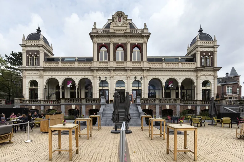 Der prachtvoll renovierte Pavillon, in dem der kulturelle Hotspot VondelCS untergebracht ist, erhielt 2014 nach der Restaurierung einen angepassten Außenbereich.