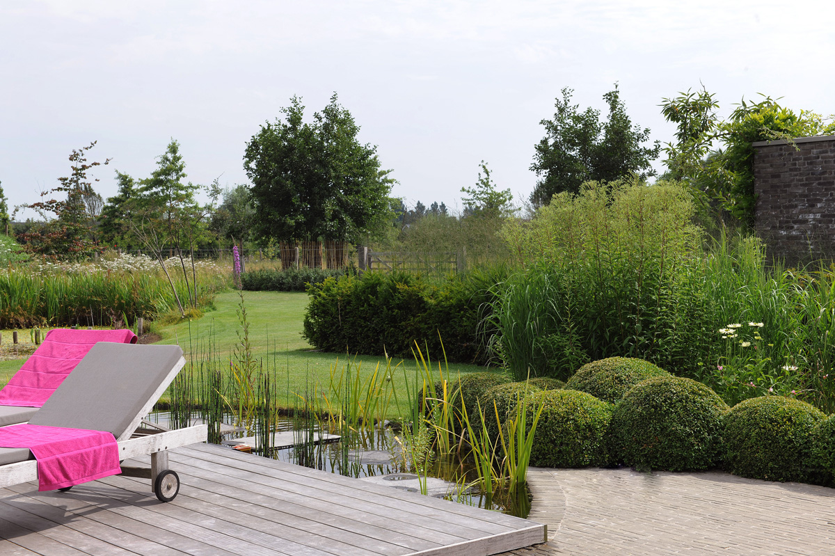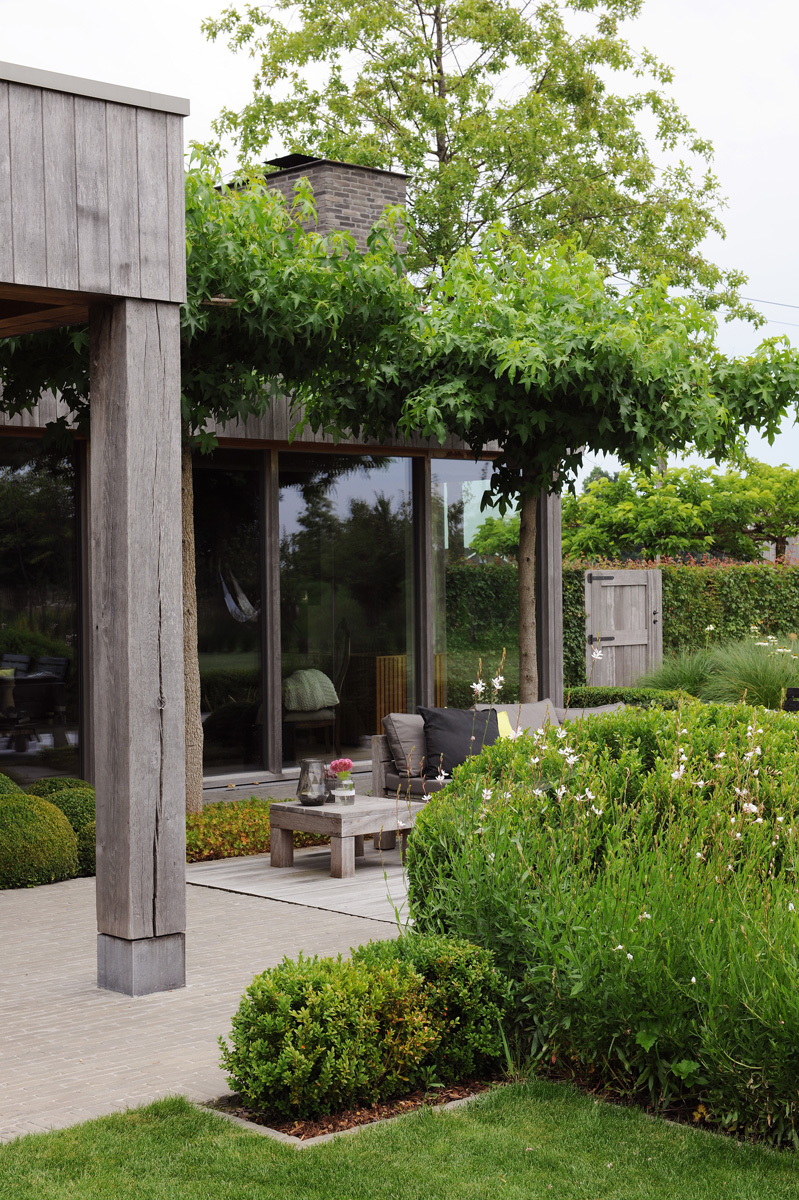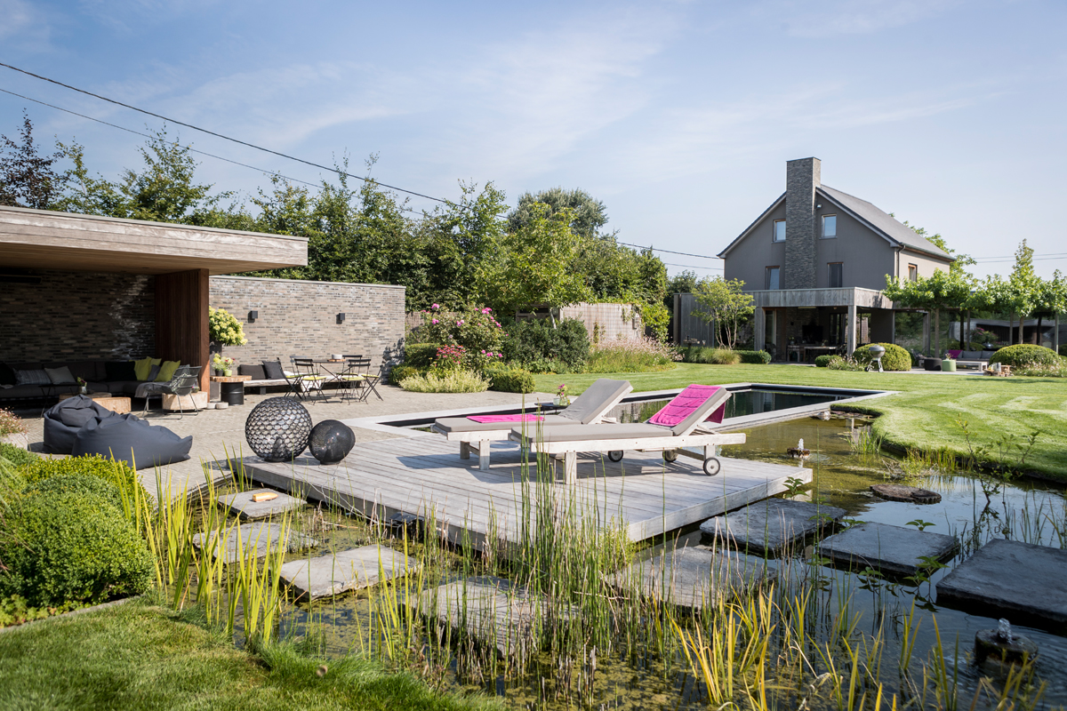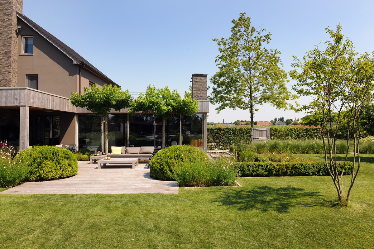 Als Geschäftsführer des Familienunternehmens Tuinen Hoornaert entwarf das Paar die Außenanlage und hatte zwei Zielstellungen vor Augen: eine ruhespendende Oase für die Familie und ein inspirierender Ausstellungsgarten für die Kundschaft.