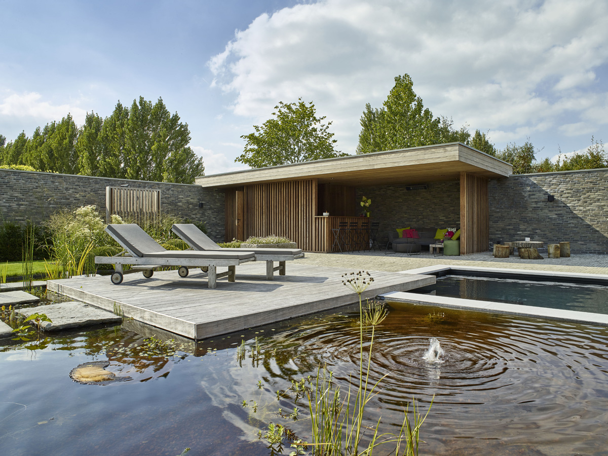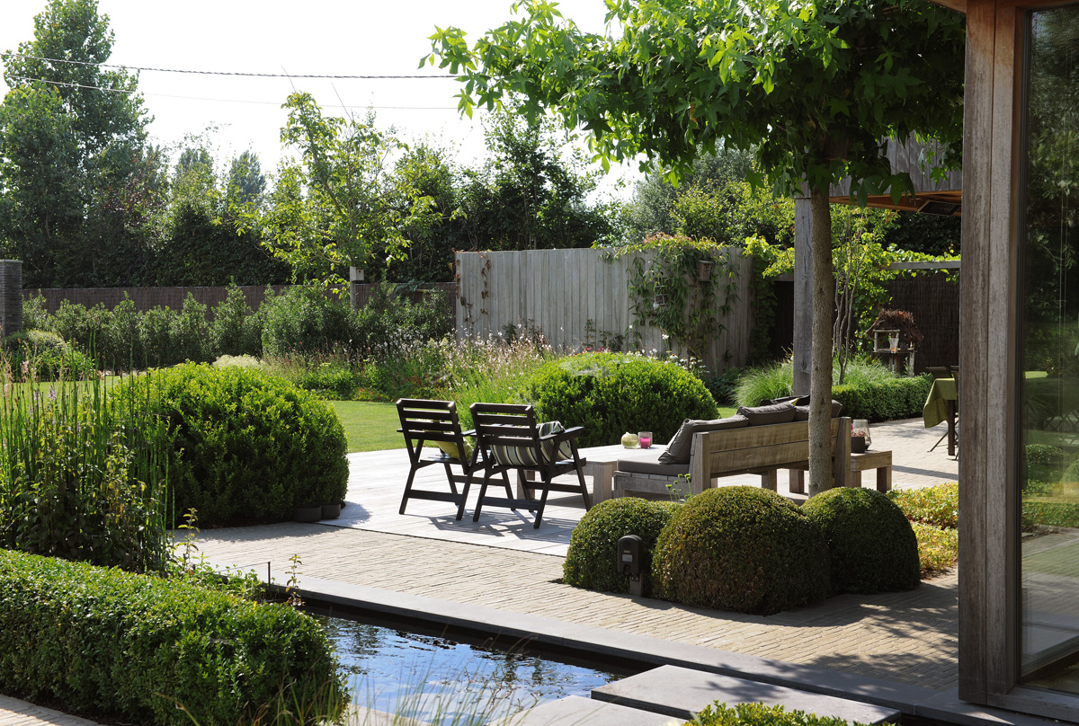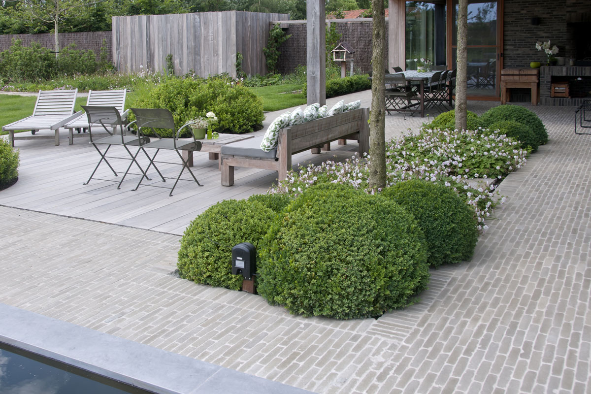 Als Geschäftsführer des Familienunternehmens Tuinen Hoornaert entwarf das Paar die Außenanlage und hatte zwei Zielstellungen vor Augen: eine ruhespendende Oase für die Familie und ein inspirierender Ausstellungsgarten für die Kundschaft.