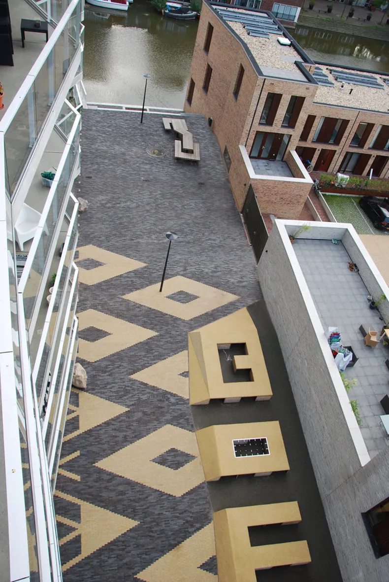 Dank dieses einzigartigen und kreativen Entwurfs wurde eine Ausnahme von der Anwendung der Puccinimethode gewährt (ein Standard für die Ausführung von Plätzen und Straßen in Amsterdam).