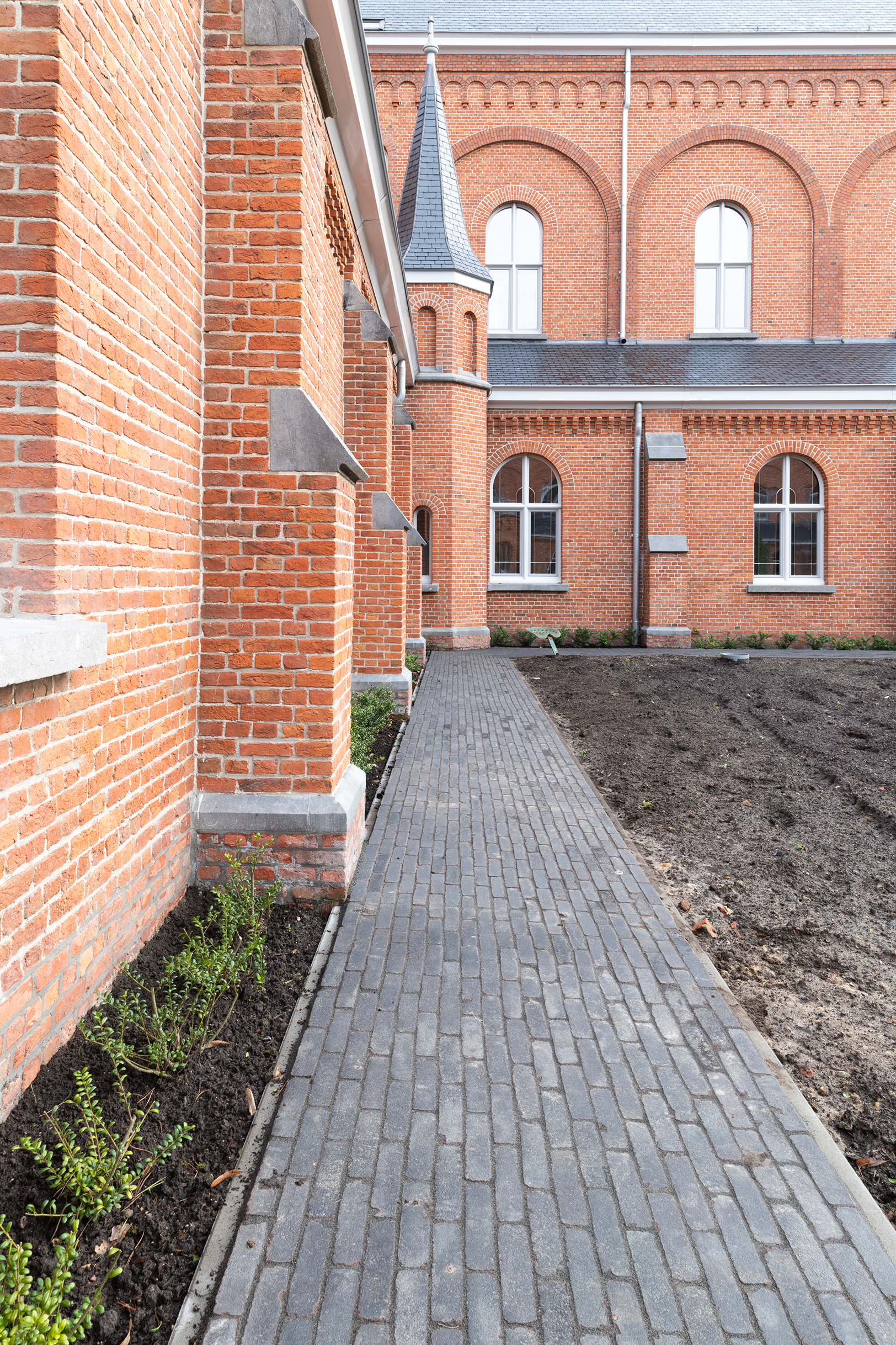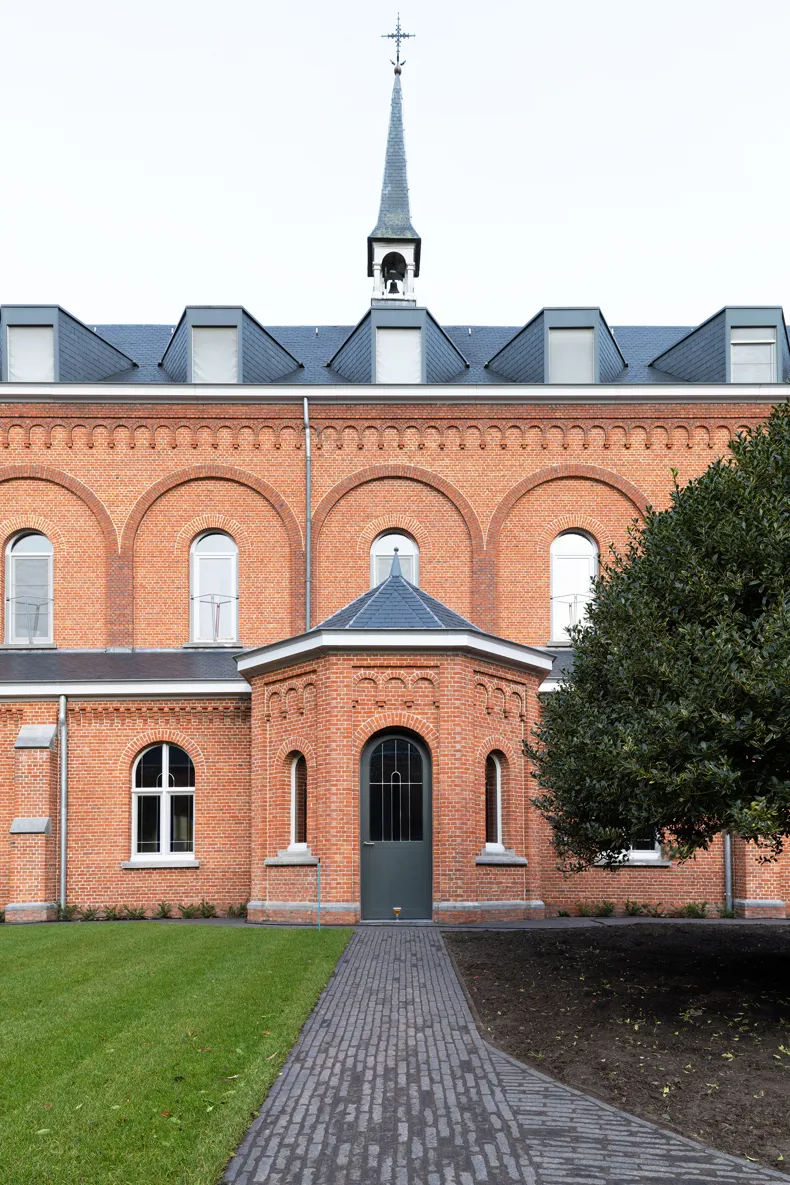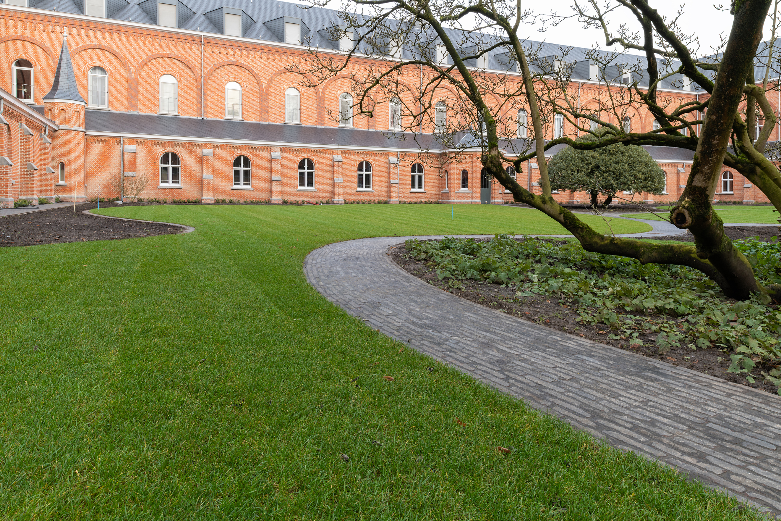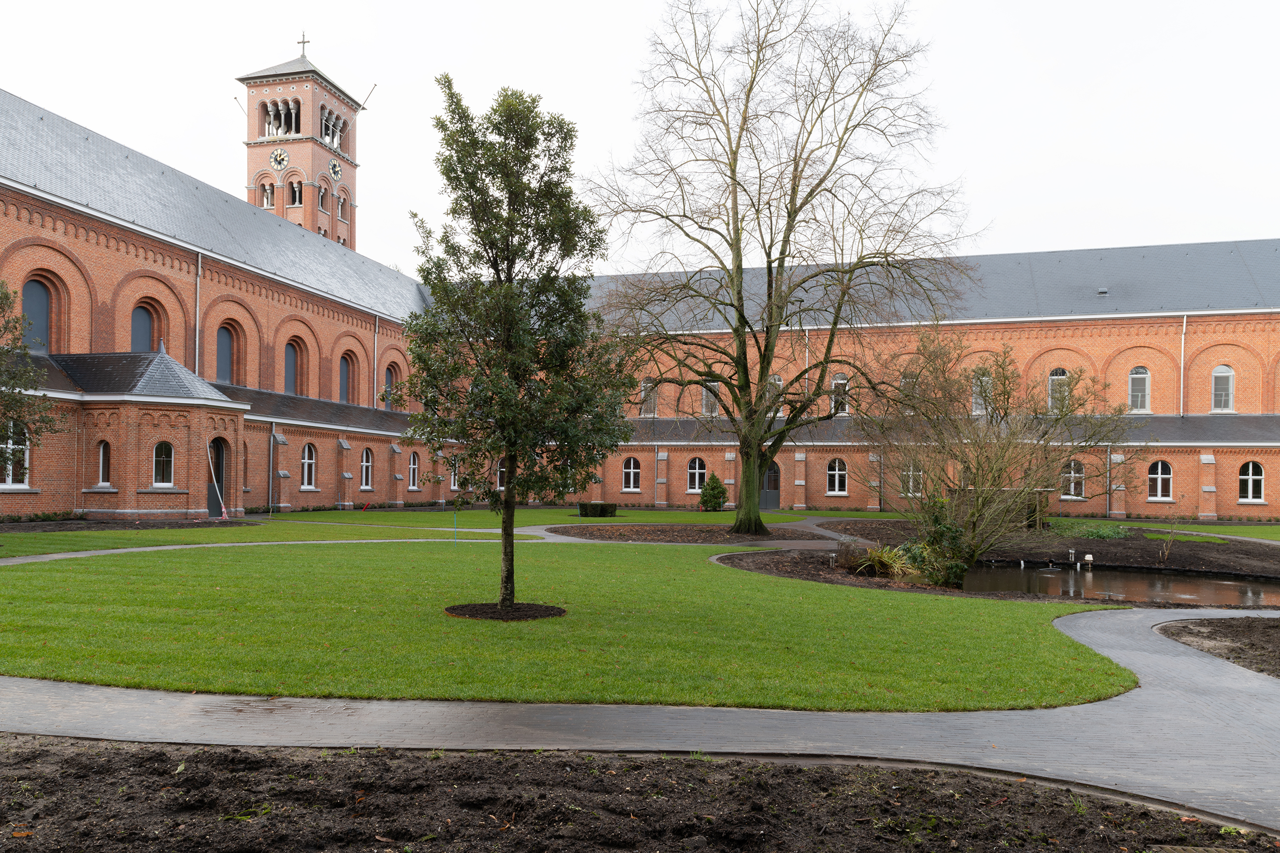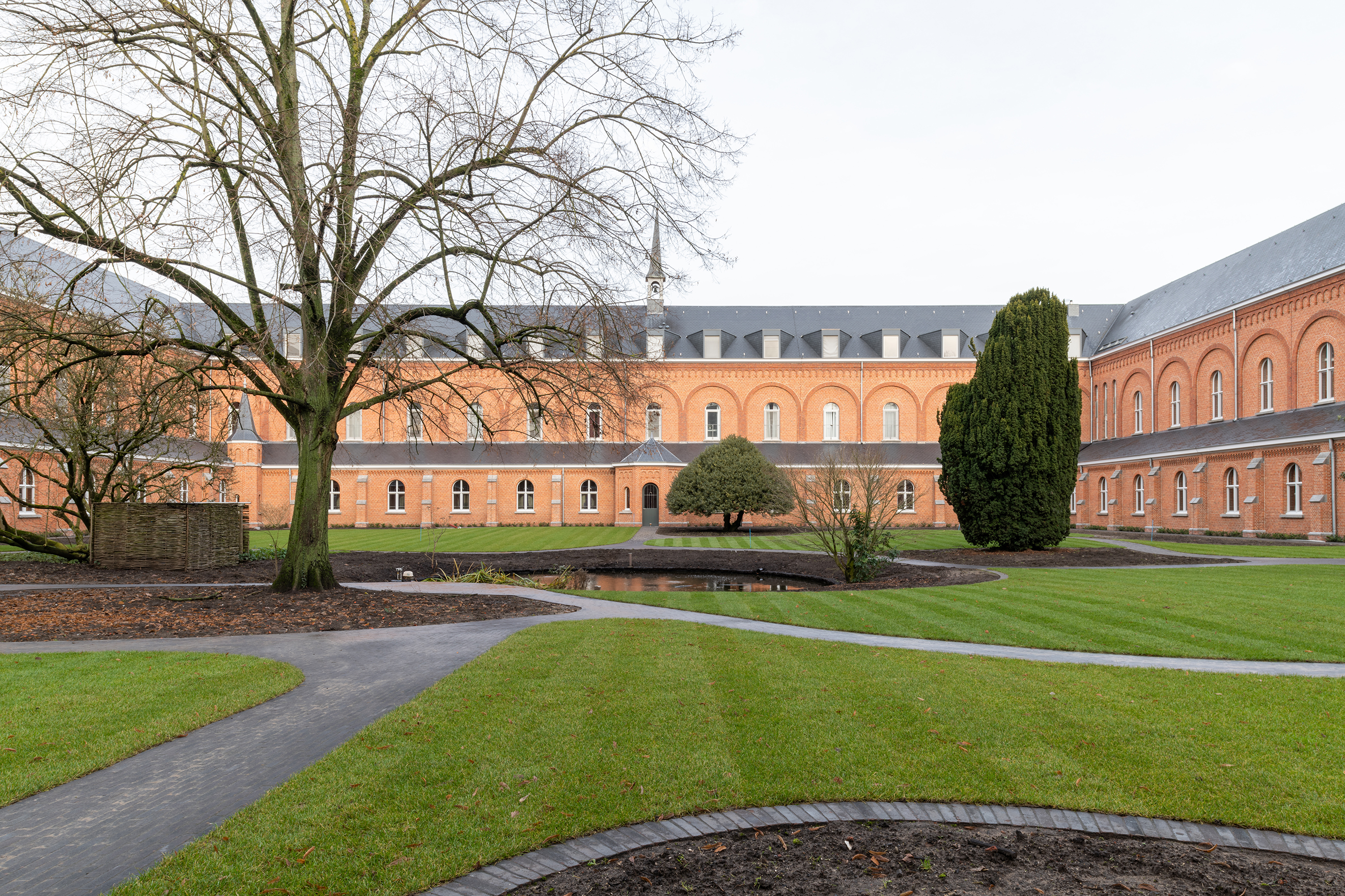 Fabian Verdult (Tuin- & Landschapsarchitectuur Willems – Verdult): „Wir haben uns auf Fotos vom Klosterhof im Jahr 1902 aus dem Archiv gestützt, in dem sanft ansteigende Formen klar erkennbar waren. Dies inspirierte uns, wieder mit fließenden Linien zu arbeiten, die eine perspektivische Wirkung entfalten und Neugier wecken, und auch zu Orten, an denen die Brüder auf einer Sitzgelegenheit zur Ruhe kommen können, jeweils in einer von ihnen gewählten Position. Das Konzept beinhaltet, eine Oase der reinen Ruhe und Verbindung mit der Spiritualität zu vereinen.