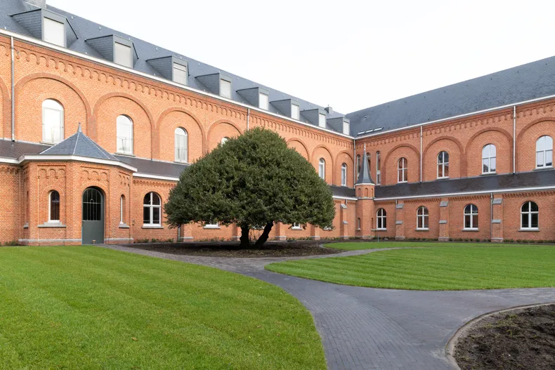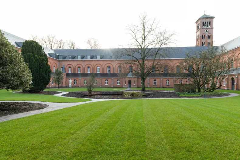 Für die Trappistenabtei im belgischen Westmalle wurde der Garten- und Landschaftsarchitekt Ludo Willems mit einem Entwurf zur Sanierung des Klosterhofs beauftragt, des grünen Herzstücks innerhalb der Mauern des Klosters. Es ist ein einzigartiges Projekt mit einem eigenen Mikroklima, da dieser Ort vollständig von Klostermauern umschlossen ist. Die Herausforderung bestand darin, in der Ausstrahlung dieses besonderen Klostergartens das karge und außergewöhnliche Leben der Brüder aufscheinen zu lassen. Die tragende Säule ist hierbei eine einheimische Bepflanzung, die sich durch einen natürlichen und nicht „gezüchteten“, pflegefreundlichen und sparsamen „Kempener“ Charakter kennzeichnet. Die Pläne für die Gartengestaltung wurden mit den Architekten Paul van Aerschot und Erik Van Herck abgestimmt, um den Zusammenhang mit der Architektur zu bewahren. Die Neugestaltung schließt auch an die umfassenden Sanierungsarbeiten der letzten Jahre an, die darauf abzielen, den Wert der Abtei wiederherzustellen und ihr ein neues „Gepräge“ zu geben.