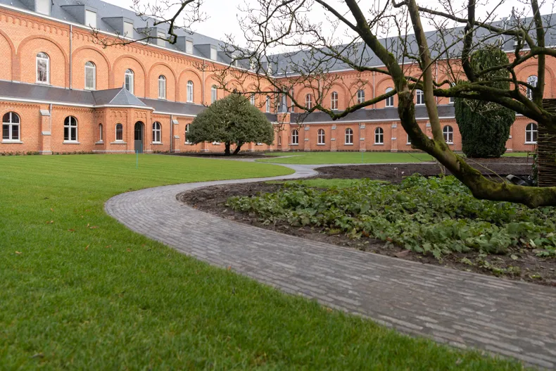 Symbiose zwischen Tonpflasterklinkern und grüner Oase