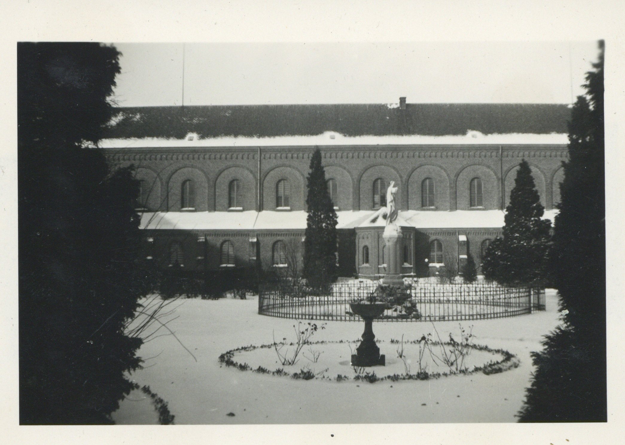Fabian Verdult (Tuin- & Landschapsarchitectuur Willems – Verdult): „Die Kamelie rechts vom Eingang ist ein Erbstück von Br. Emmanuel. Sie war ein Geschenk von Bekannten und er hatte den Wunsch, sie im Klosterhof wachsen zu sehen. Die Linde (Tilia) wurde vor mehr als 100 Jahren gepflanzt und birgt daher ein Menge Geschichten. Sie ist ein bedeutender Baum, der in warmen Sommern im Innenhof der größte Schattenspender sein wird. In ihrem Schatten ist daher auch eine kleine Sitzgelegenheit am Teich vorgesehen. Unter der Linde wurde Hedera helix 'Arborescens' in Kombination mit Hydrangea paniculata 'Pinky Winky' gepflanzt. 3 Solitärpflanzen (Hydrangea) bieten im Sommer eine eher hellgrüne Blüte mit schöner Verfärbung im Herbst. Der Taxus in Säulenform (auch auf historischen Fotos zu sehen) steht zweifellos schon seit über 100 Jahren – vielleicht sogar 200 – an seinem Platz. Mit dem Wissen, dass ein Taxus in Säulenform sehr langsam wächst, lässt sich dies aus seiner enormen Größe schließen. Die benachbarte Bepflanzung besteht aus Lavendel in Kombination mit einigen botanischen Rosen. In diesem Fall sind Violett und Weiß immer eine gute und sinnvolle Wahl.