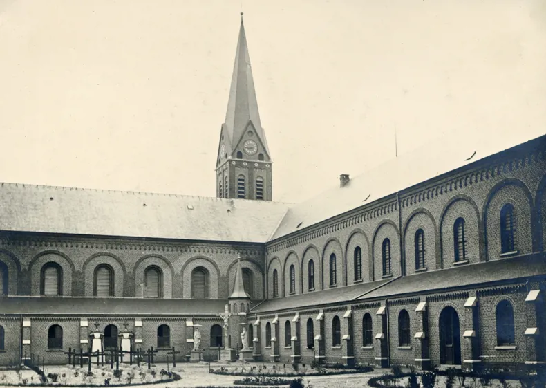 Foto unten: Pandhof in 1902 - p. Robertus Doutreligne, Willem Verelst, nov.Damianus Neetens