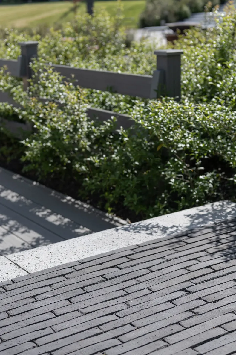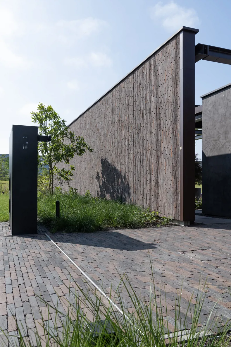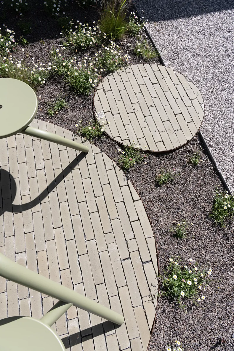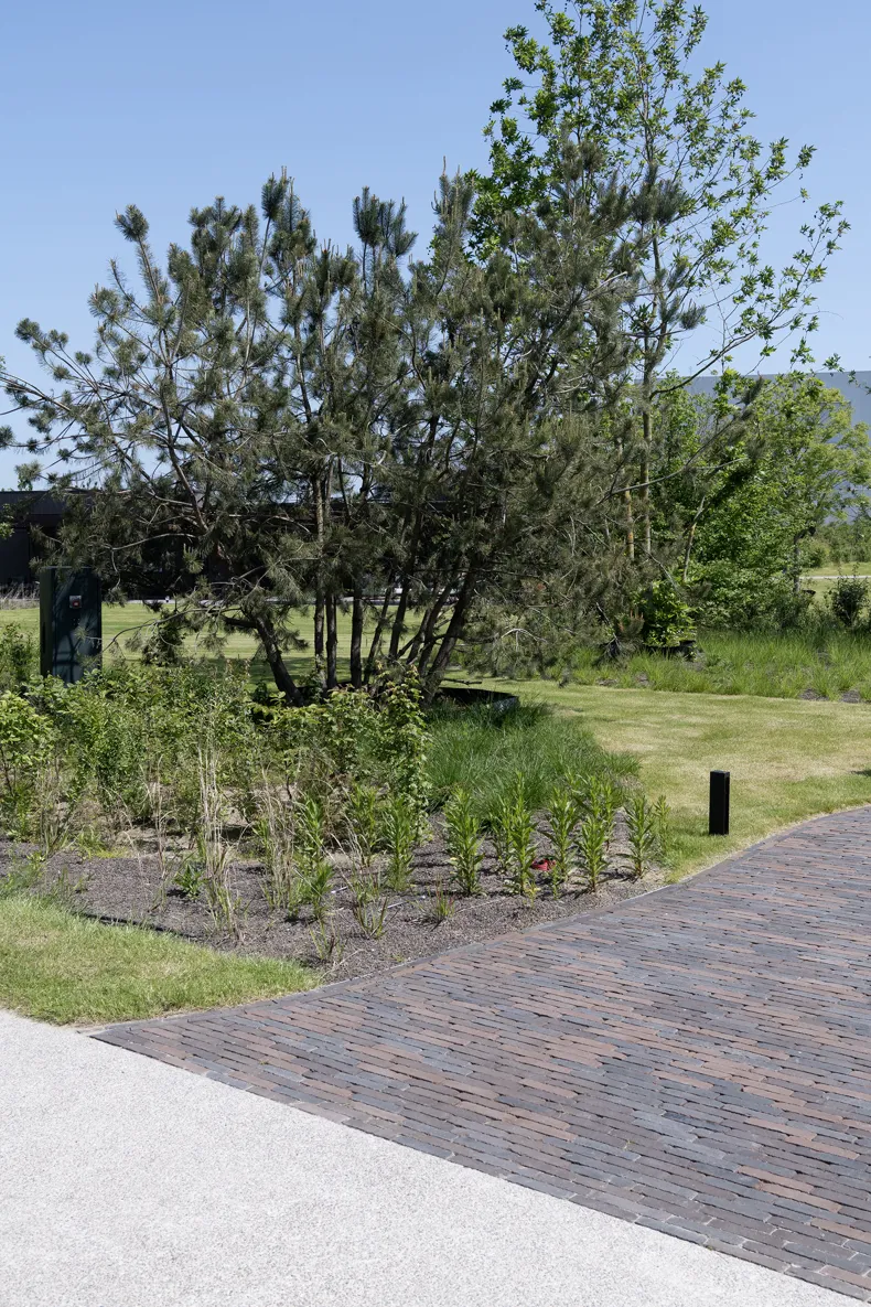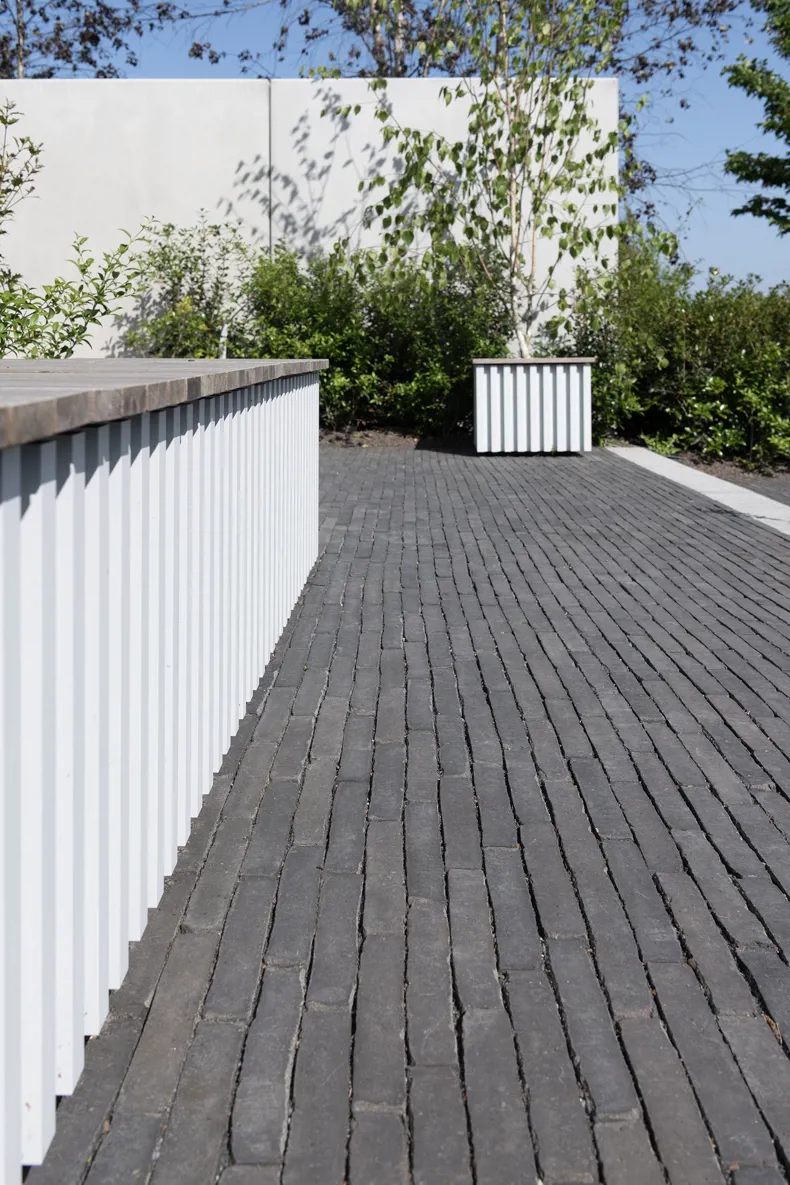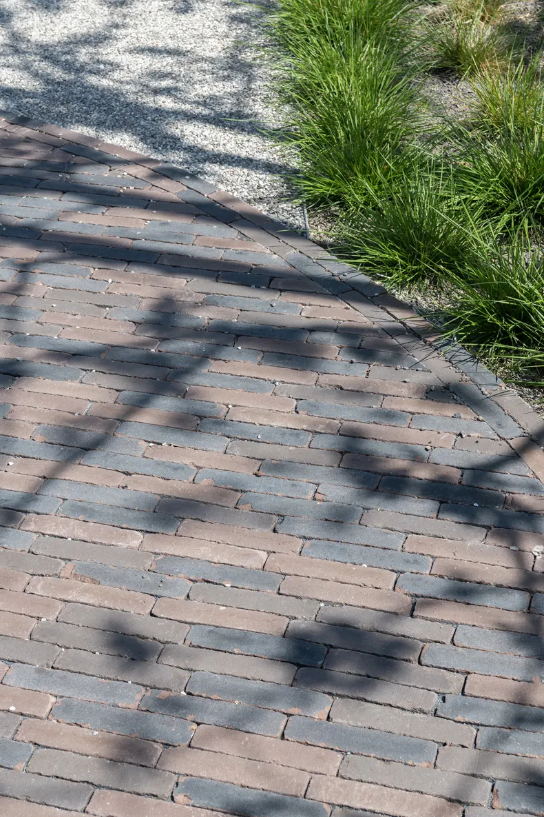 Vande Moortel ist als Partner im Park sehr präsent – manchmal subtil und überraschend –, und zwar nicht nur in den verschiedenen Settings, sondern auch am Übergang vom Rundweg zu den verschiedenen Demonstrationsgärten. Dafür hat burO Groen eine Spezialmischung aus Tonpflasterklinkern zusammengestellt. So finden Sie an diesen Stellen im Park eine Mischung aus SeptimA Kastanie, Taupe, Colosseum und Onyx vor.