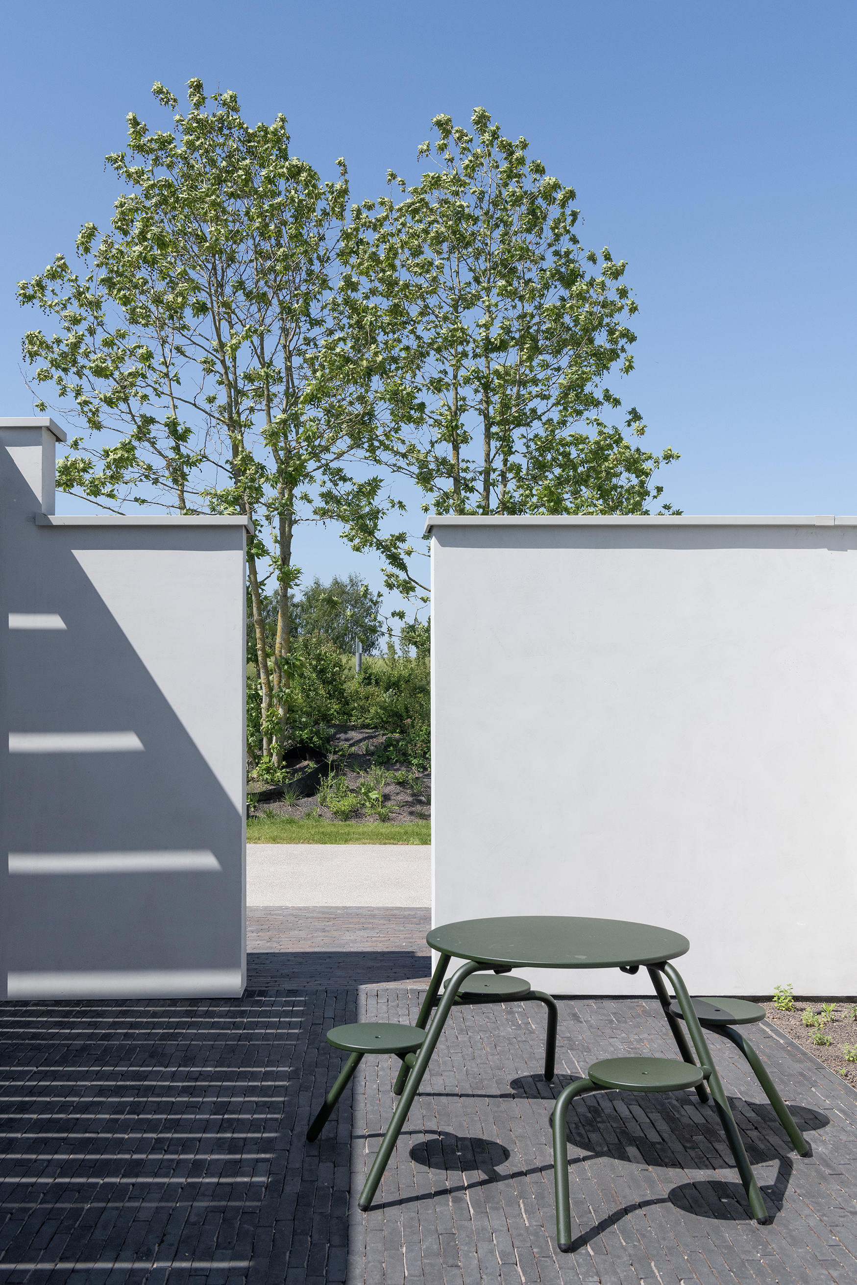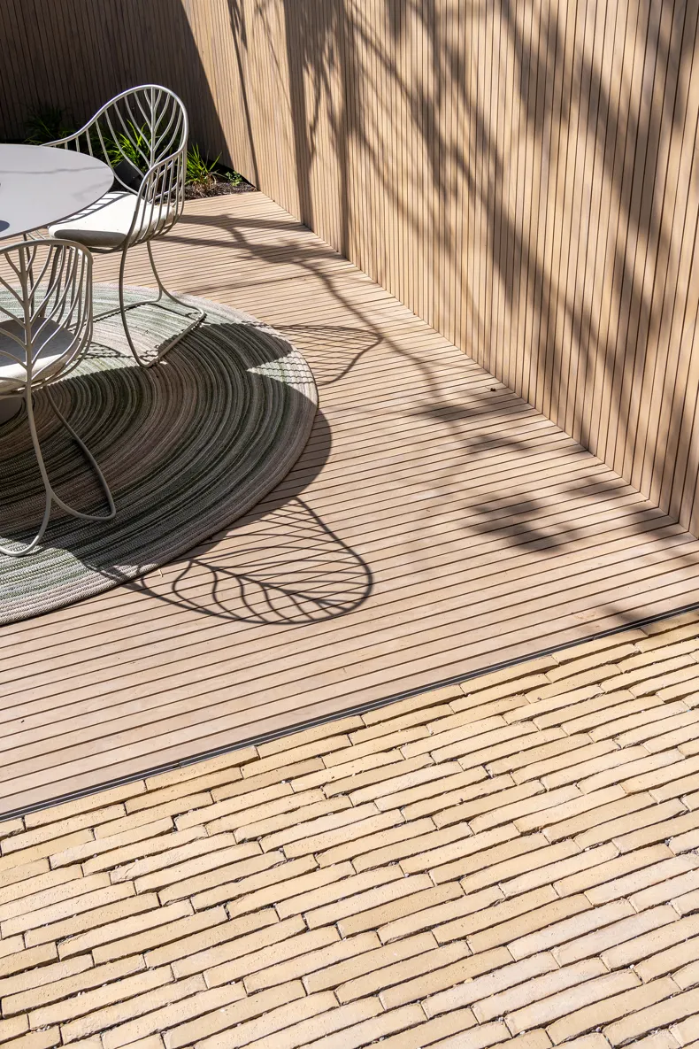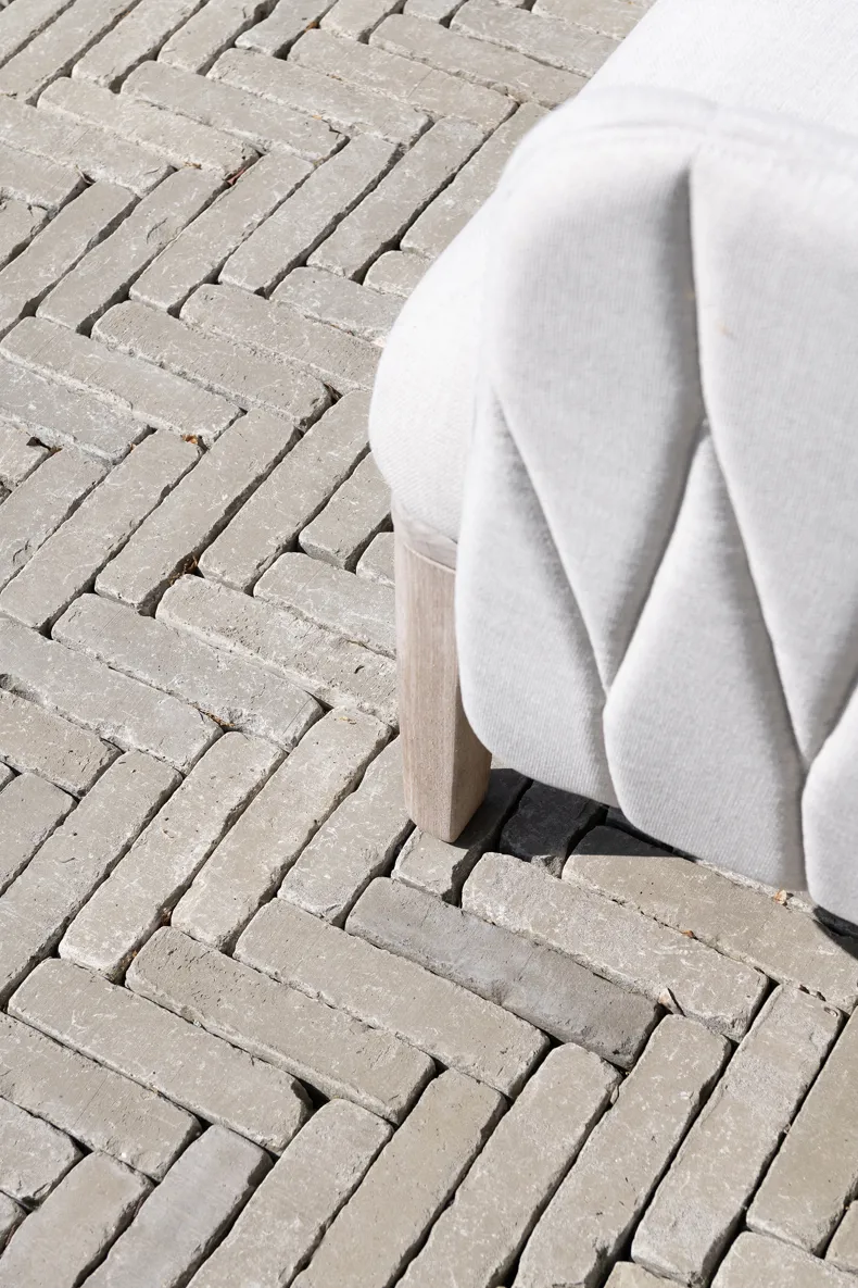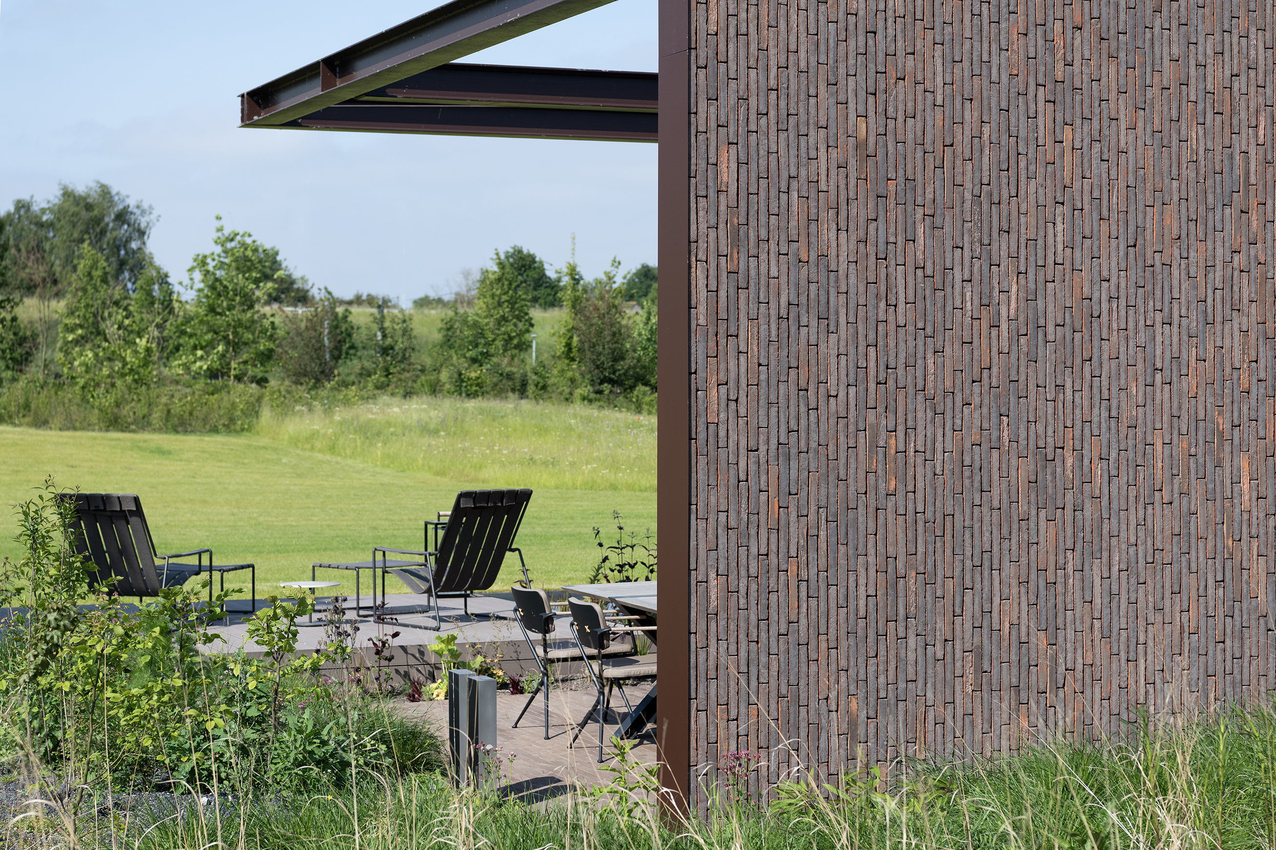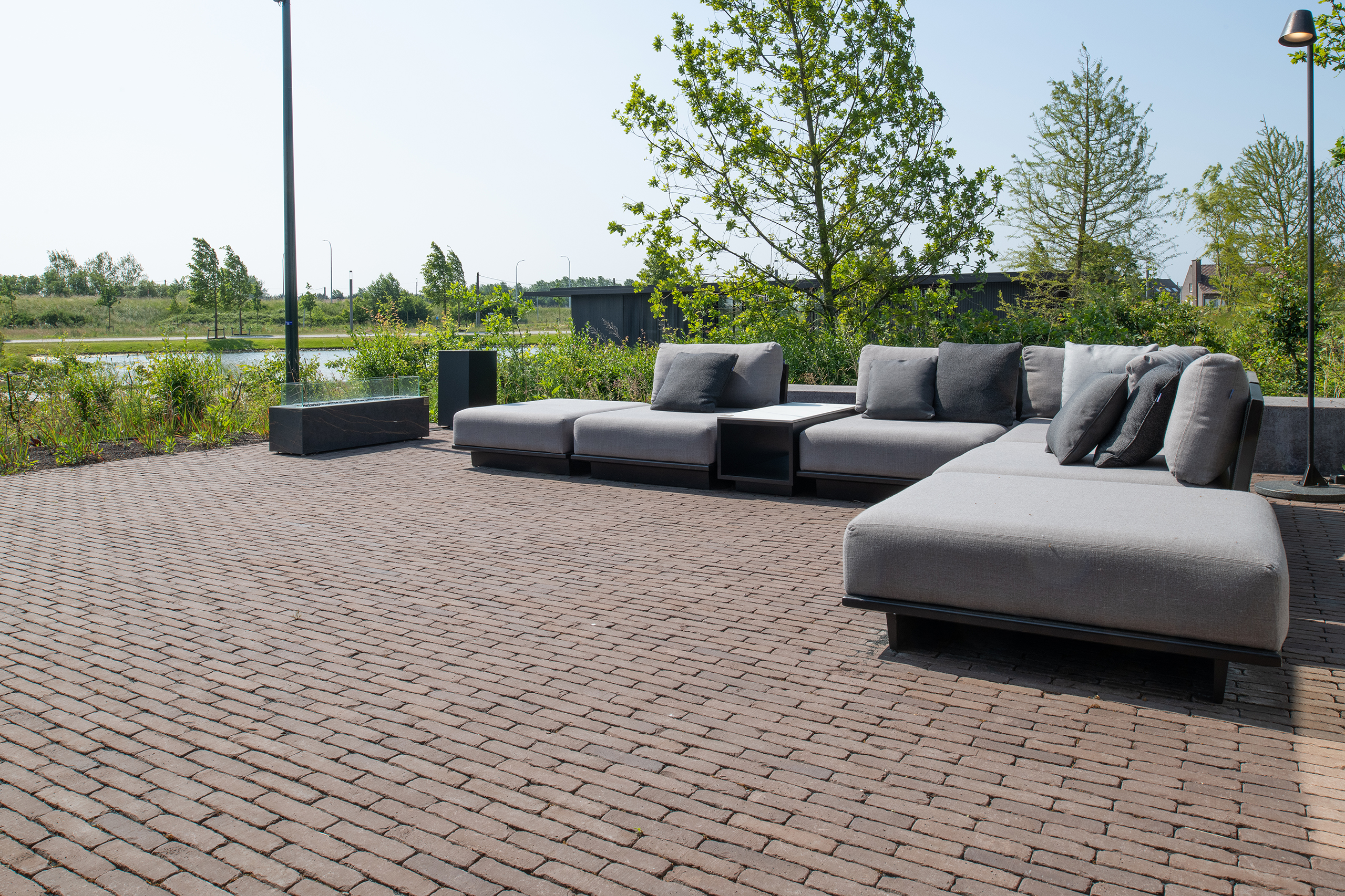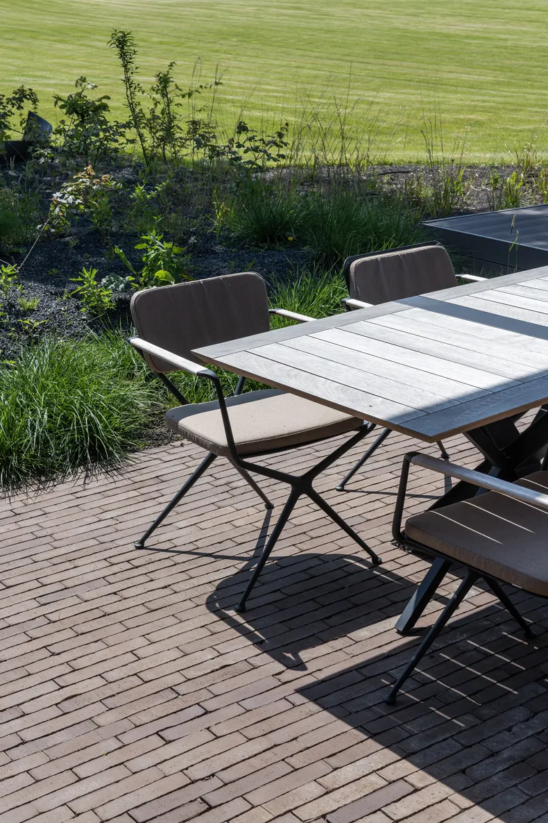 Vande Moortel ist als Partner im Park sehr präsent – manchmal subtil und überraschend –, und zwar nicht nur in den verschiedenen Settings, sondern auch am Übergang vom Rundweg zu den verschiedenen Demonstrationsgärten. Dafür hat burO Groen eine Spezialmischung aus Tonpflasterklinkern zusammengestellt. So finden Sie an diesen Stellen im Park eine Mischung aus SeptimA Kastanie, Taupe, Colosseum und Onyx vor.