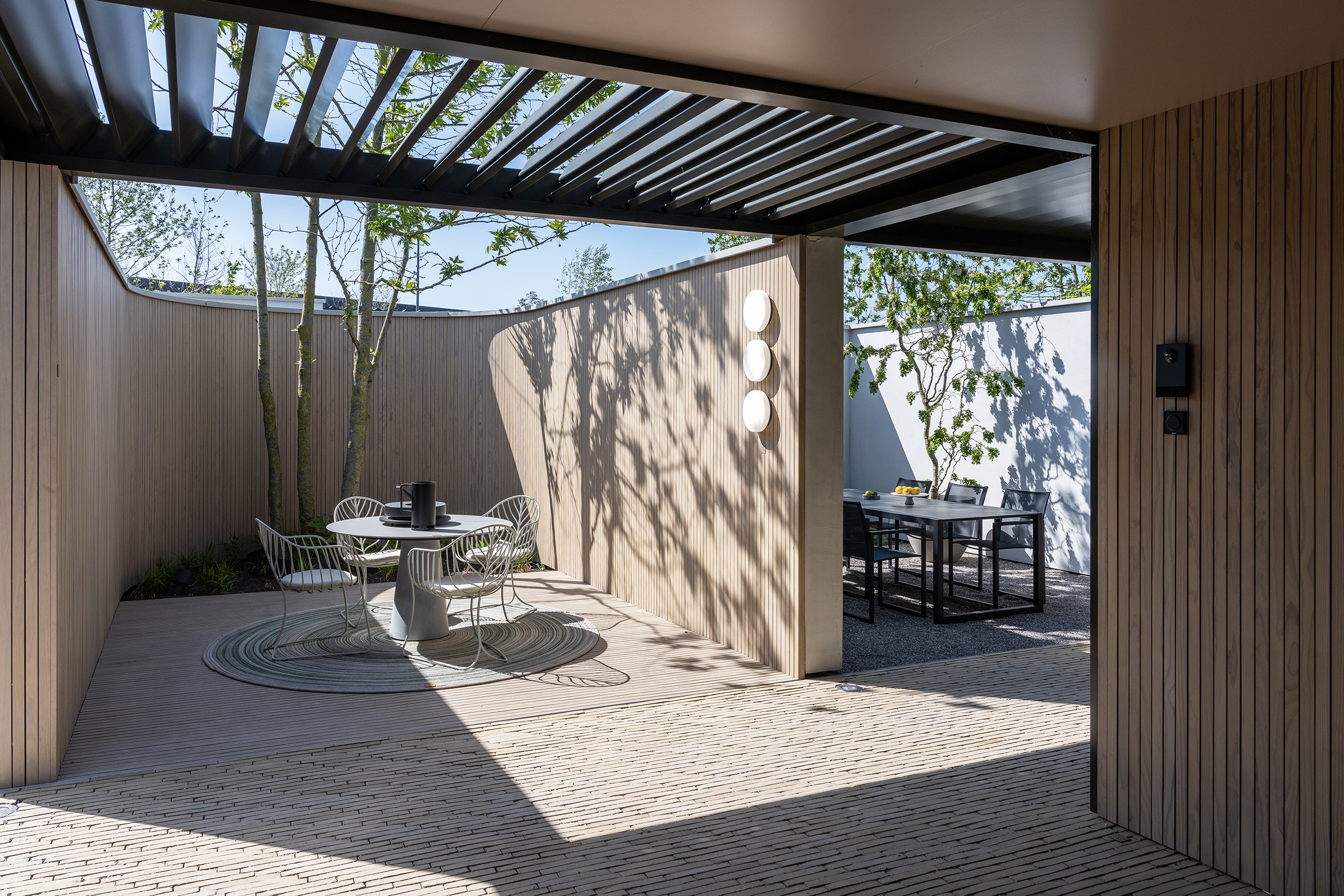 „Residential“ präsentiert, wovon viele von uns träumen, wenn sie an einen Garten denken, und zwar einen einladenden Ort für Genuss und Entspannung in einer natürlichen Umgebung. Ein Blickfang ist hier die monumentale Mauer mit linea 3007-Riemchen, die zusammen mit Innenwänden und Terrassen in SeptimA Sepia und Ancienne Belgique Camel die Gestaltung dieses monumentalen Pavillons prägen.