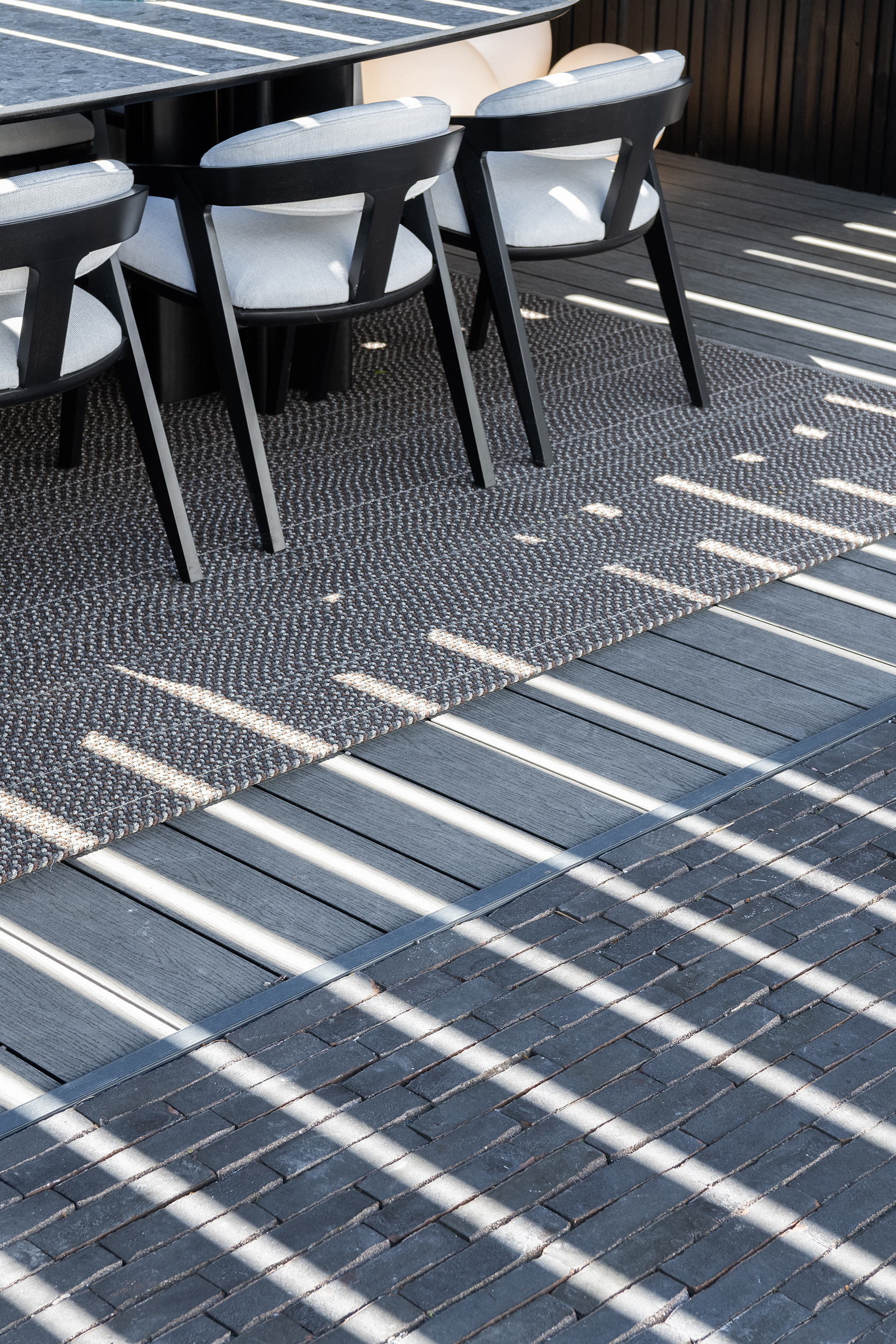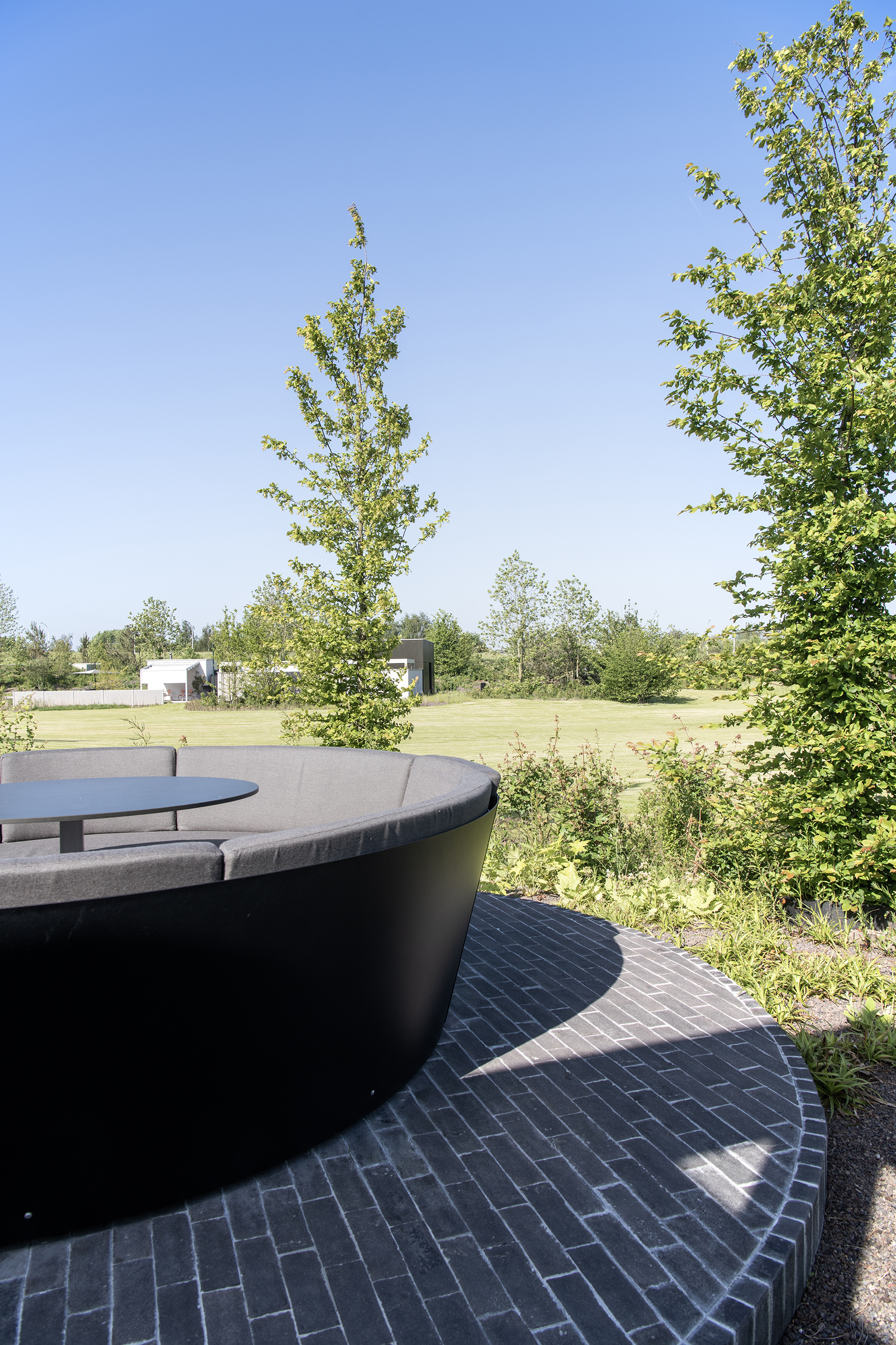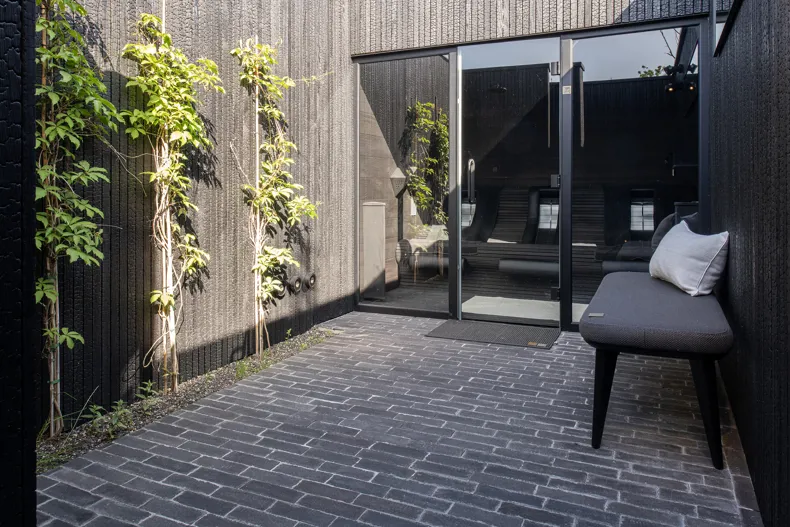 Auf Ihrem Rundgang werden Sie noch viel mehr überraschende Ideen entdecken. Beim Garten „Wellness“ beispielsweise, dessen Themen, wie nicht anders zu erwarten, Wiederauftanken und Zur-Ruhe-Kommen sind, bilden die SeptimA Anthrazit-Klinker ein Sitzpodest für die Saunen, die Jacuzzi und den Entspannungsraum.