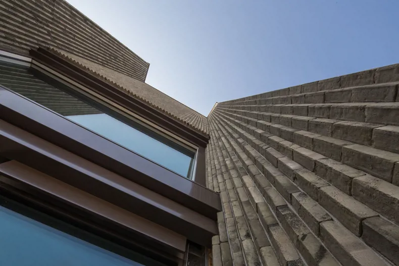 Die Ausführung der Fassadenflächen ist ein Beweis für die uneingeschränkten kreativen Möglichkeiten, die Ziegel bieten. Durch die vertikale Verarbeitung des grün-grau geschmorten Ziegels Nature7 Brick R wird die Anmut des architektonischen Konzeptes besonders betont.