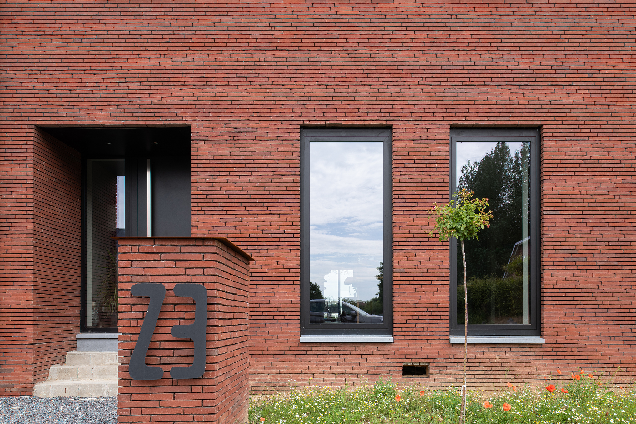 Dieser Karminrot, dünne Formpressziegel trägt unser ökologisches ECO-7-size-Label. Zusätzlich zu ihrem eleganten Erscheinungsbild lässt diese Variante mit geringerer Tiefe unserer linea-Serie mehr Platz für Dämmung oder Wohnfläche. Ebenso wie alle Ziegel unserer linea-Serie ist er ideal für das Akzentuieren von architektonische Linien.