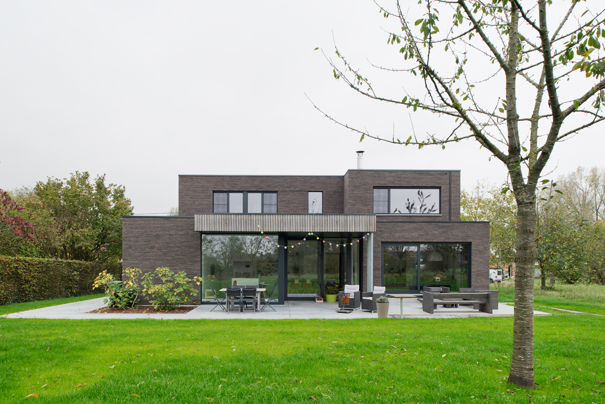 Diese elegante Villa liegt im Naturschutzgebiet Latemse Meersen, am grünen Stadtrand von Gent am rechten Ufer der Leie. Die Aufgabe war es, ein Haus mit maximalem Blick auf das schöne Naturschutzgebiet im Süden zu entwerfen.